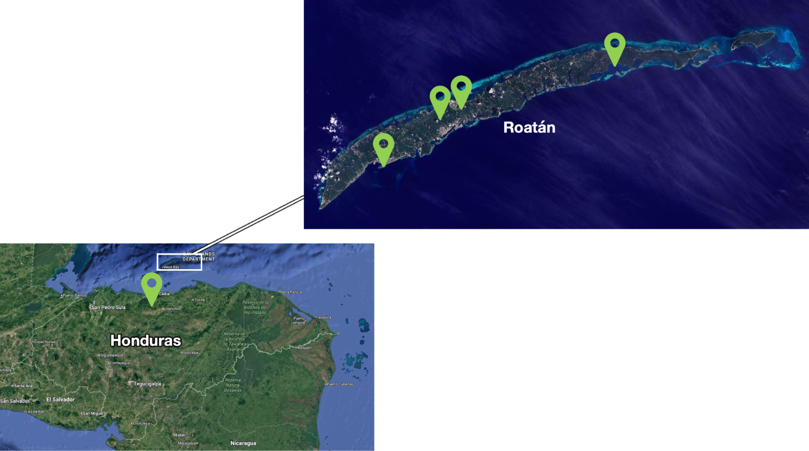 It has five enclaves: One in the continental port of Satuyé near La Ceiba, and four in Roatán (Beta District, Pristine Bay, areas in Port Royal, and a building in the main city).
