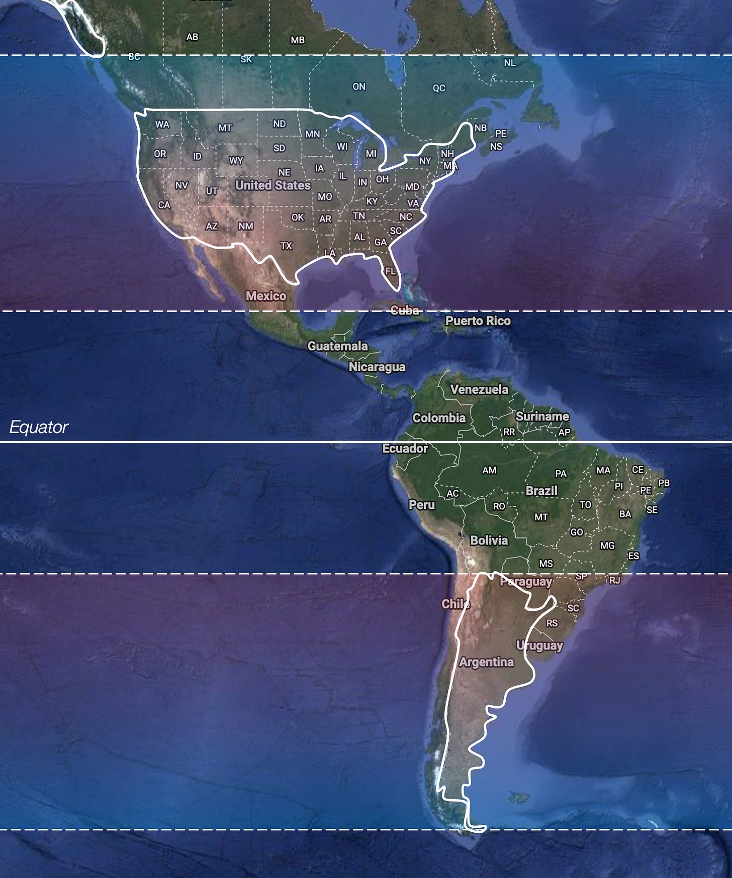 Estados Unidos y Argentina no sólo tienen geografías parecidas por razones geológicas. También están en latitudes similares, solo que a lados opuestos del ecuador!