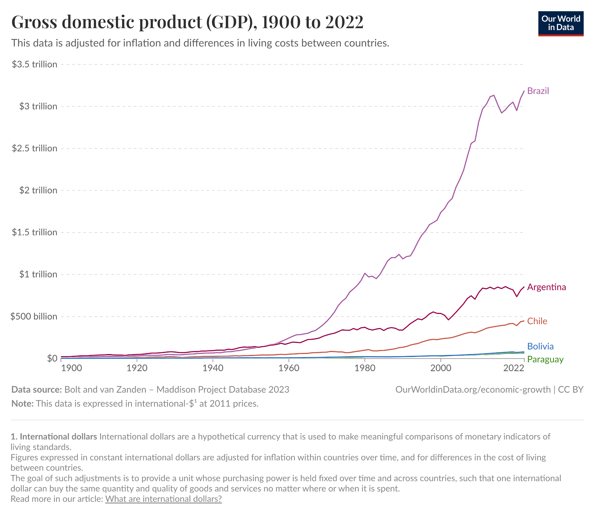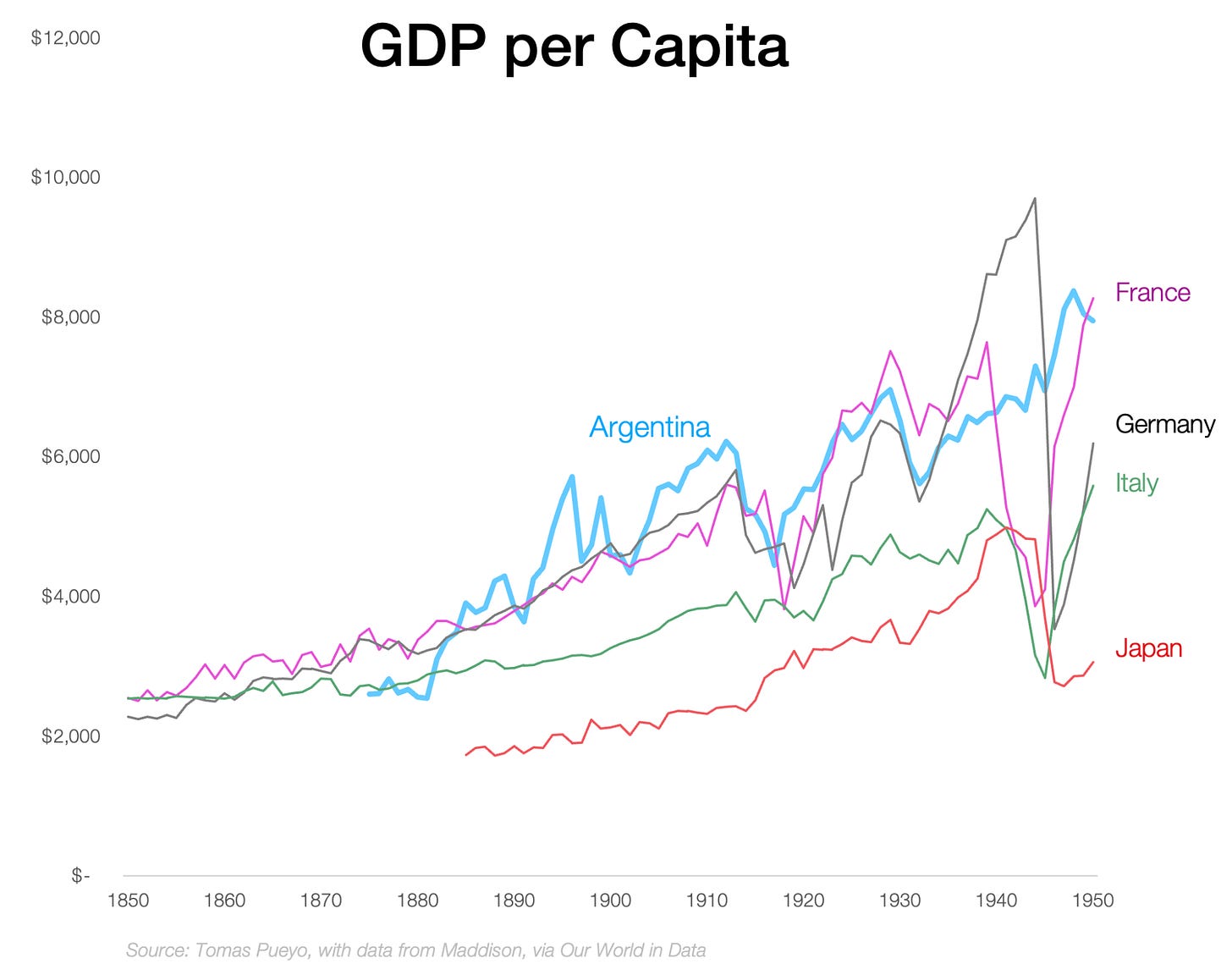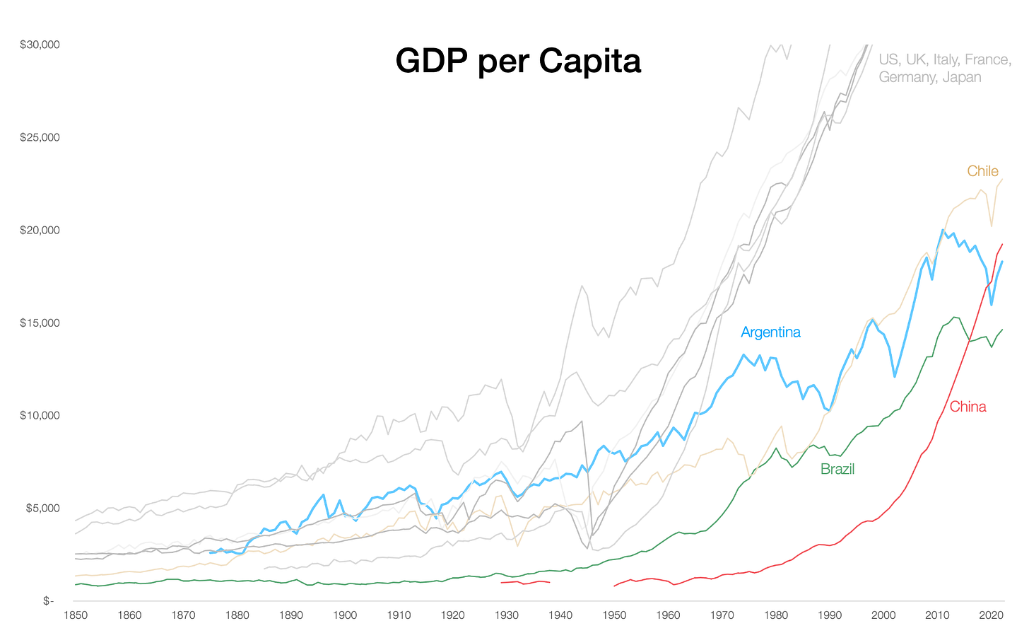 Not only did the Western world leave Argentina behind. Traditionally poorer countries like Chile and China are now richer! And Brazil is catching up!