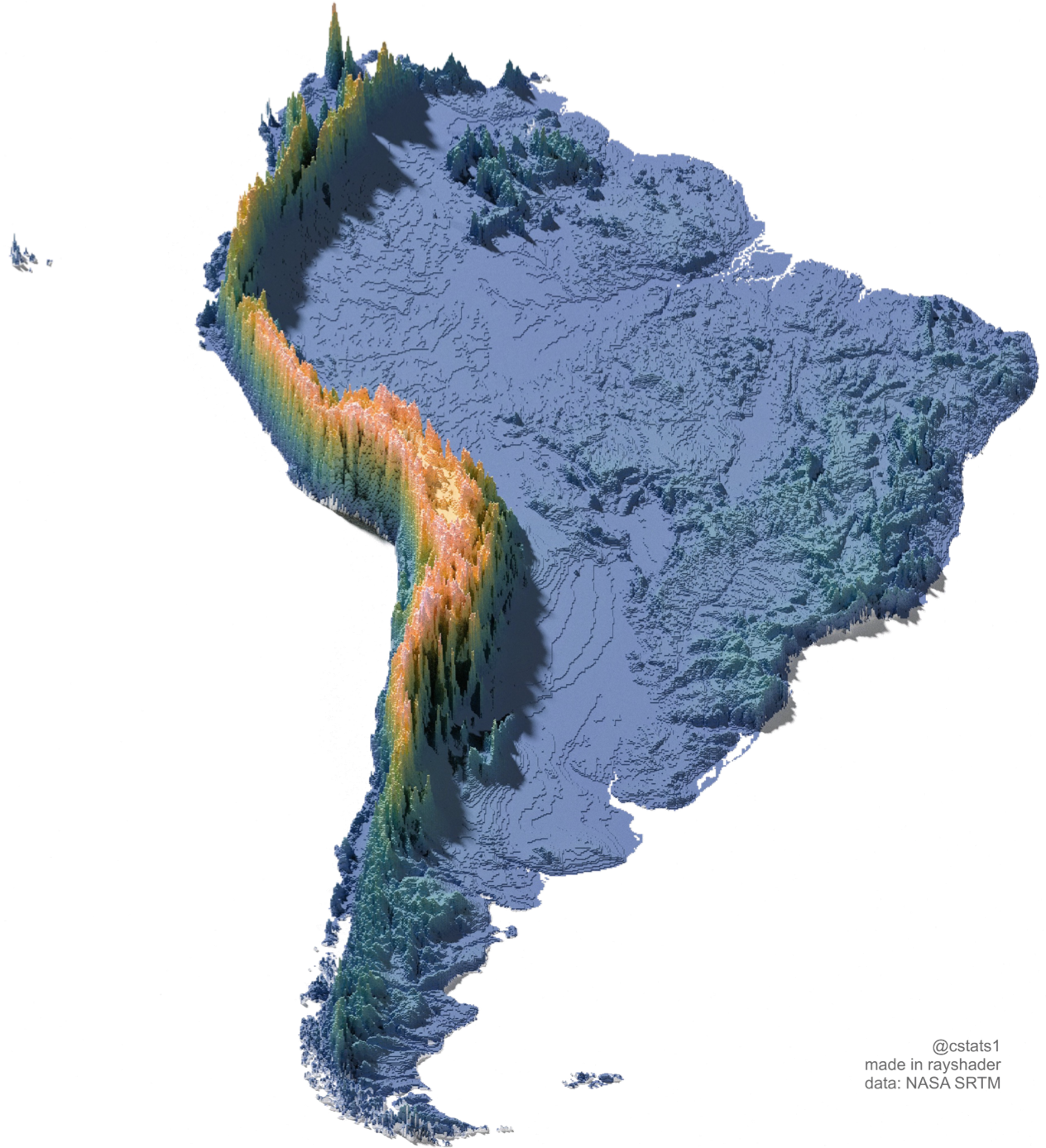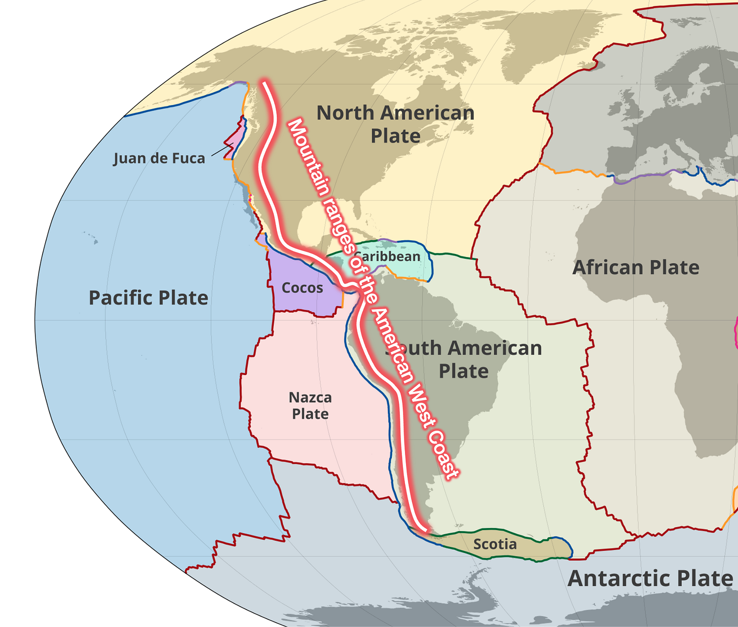 And if you think it’s a coincidence, think again, for both lateral mountain ranges have the same origins in the US and Argentina! On the western side, we find the tall mountain ranges.