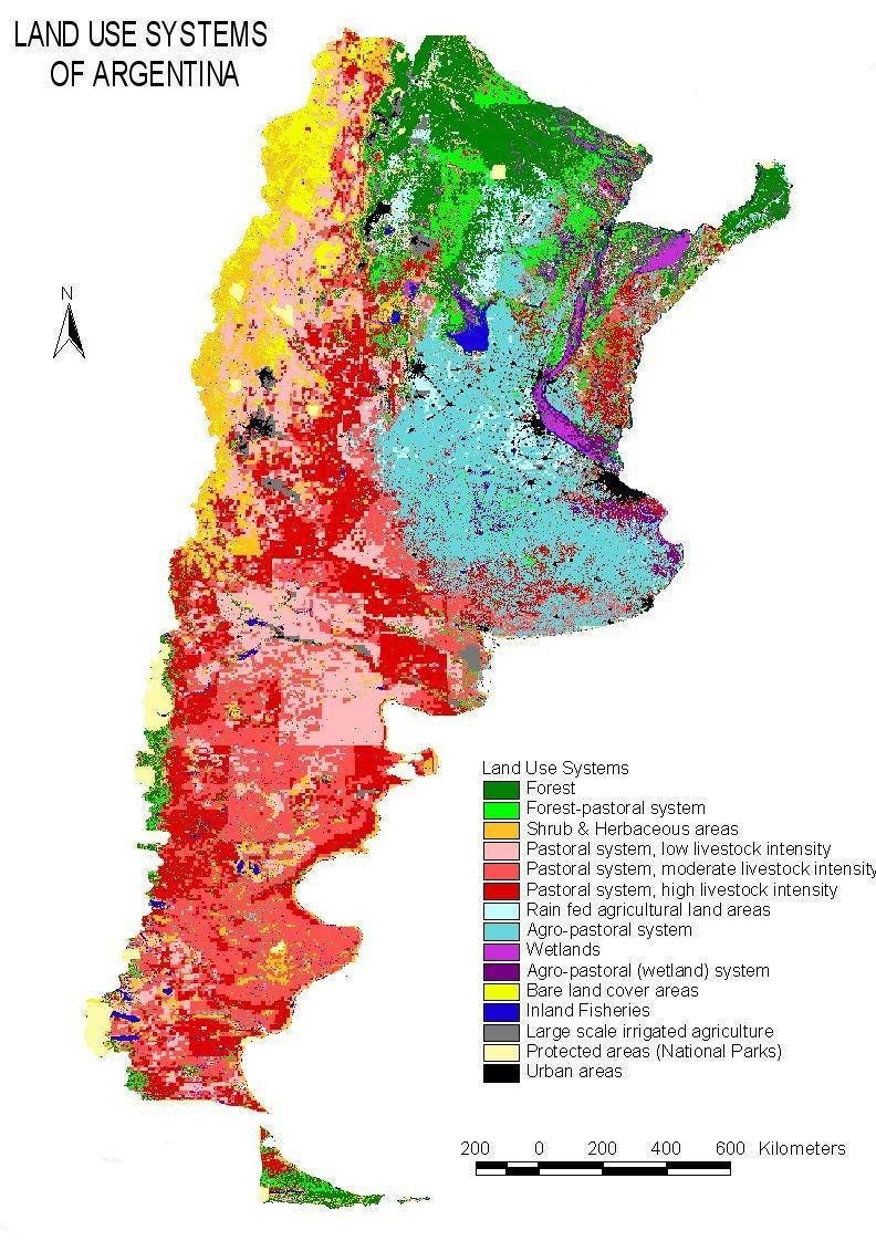 The equivalent for Argentina is agriculture in the north and ranching in the south: