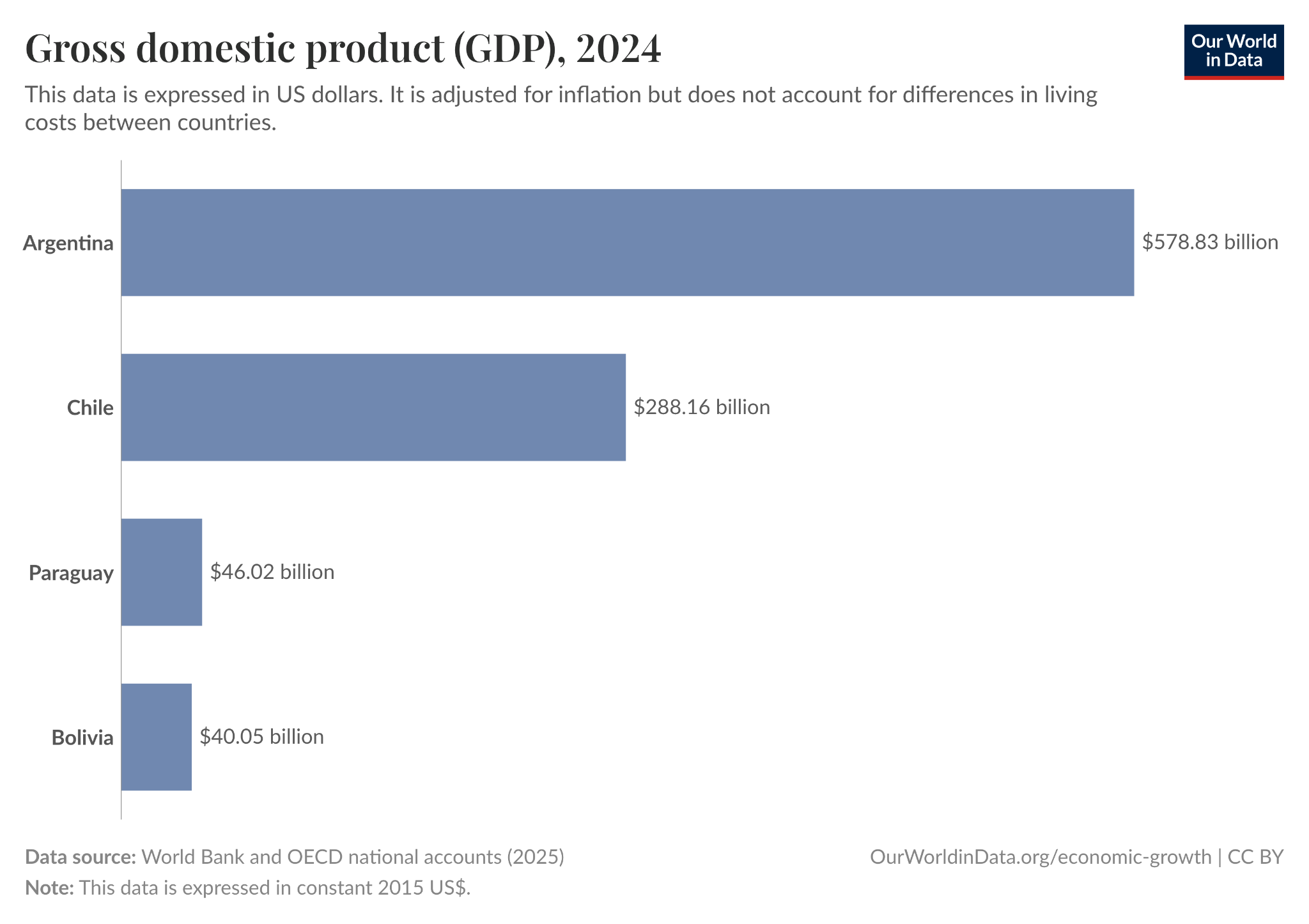 Brasil es mucho más grande que Argentina: tres veces en superficie, 4,5 veces en población y 3,5 veces en economía.