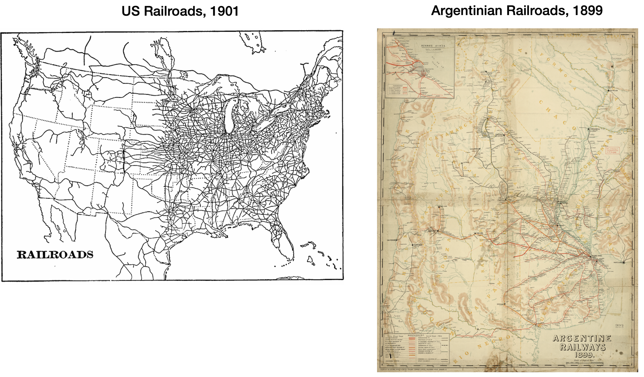 I mentioned that Argentina started building its railroads in the late 1800s. By then, the US was already criss-crossed with railroads. Why the disparity?