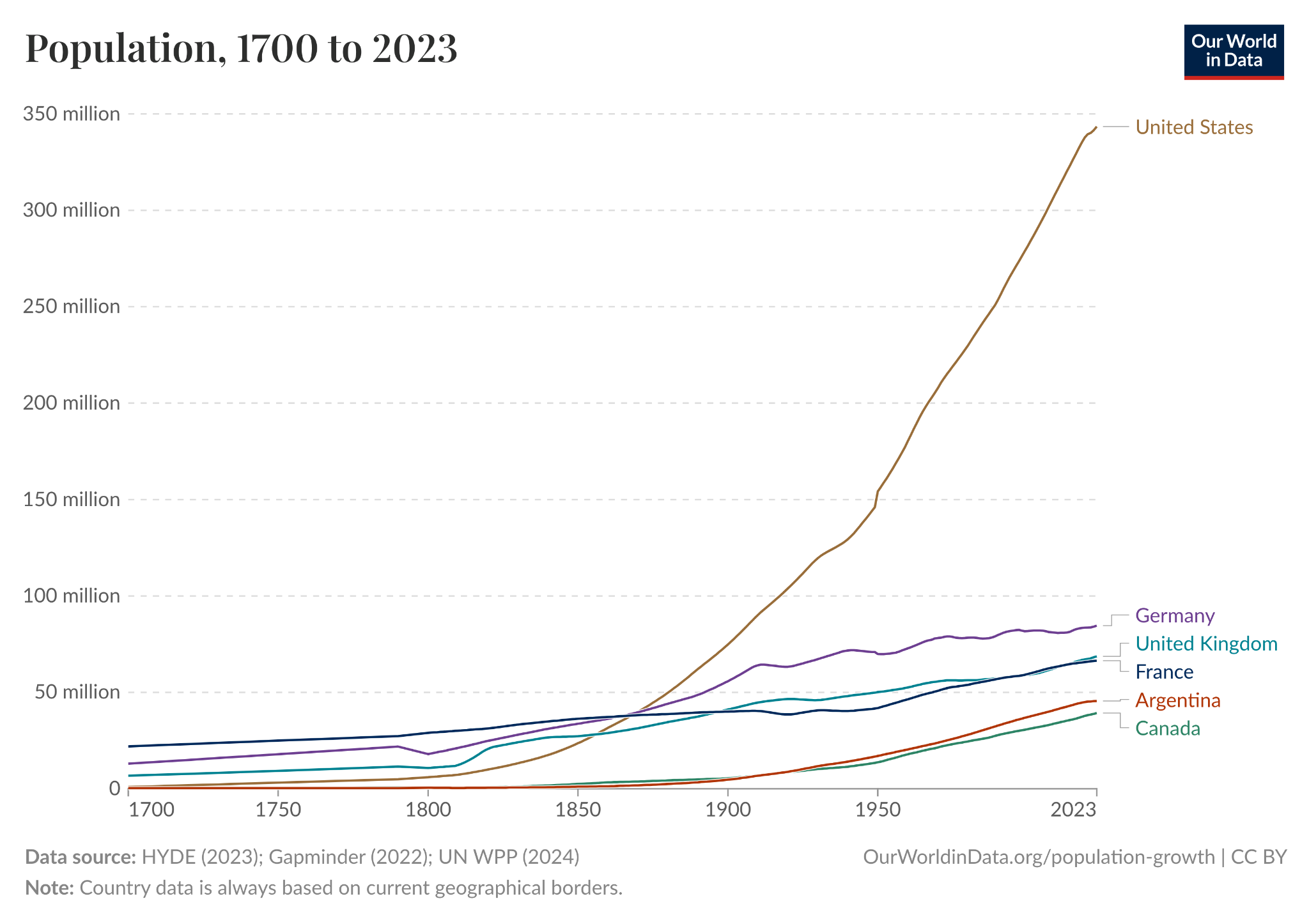 The US’s population had been growing dramatically for over a century by the time Argentina’s started growing. Why?