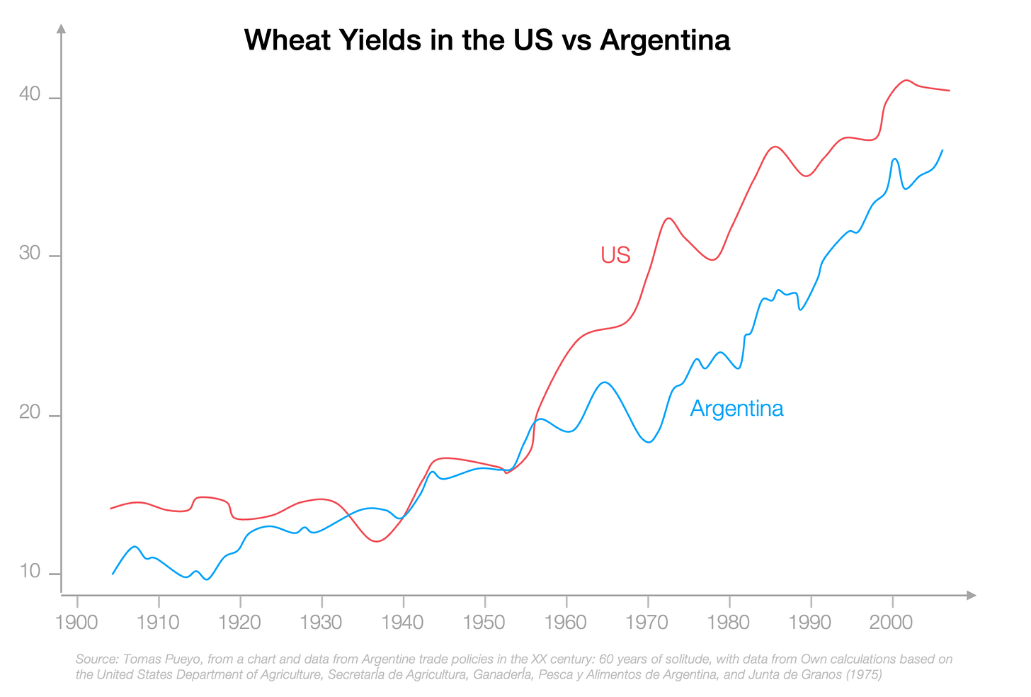 So what happened is that, in the late 1800s and early 1900s, there was a massive agricultural boom in Argentina, and people raced to convert new land from pasture into cropland. This lasted until the 1910s, when all the good land was taken.