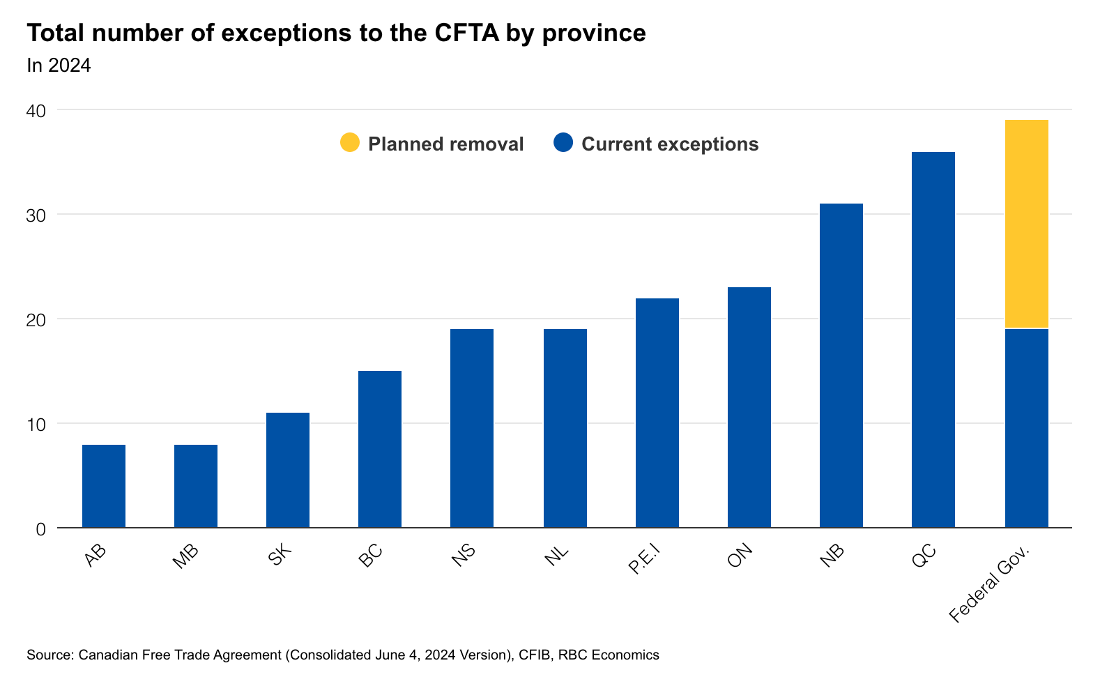 The Canadian Free Trade Agreement (CFTA) made some progress in 2017, but more than one-third of the 334-page agreement consists of listed exceptions by provinces to the agreement.