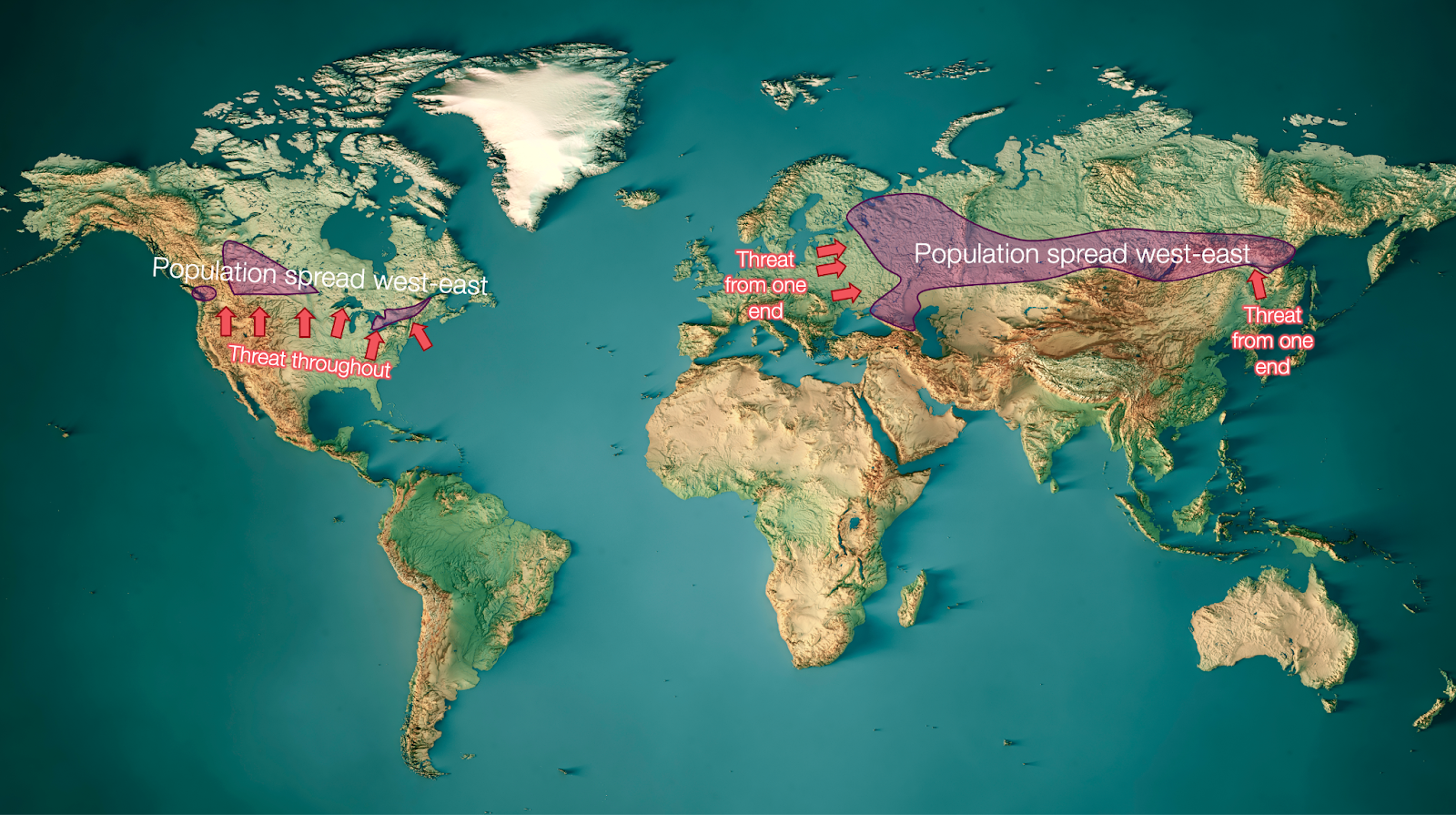 Another comparison is Russia itself: It’s been invaded many times in its history, but nobody has fully conquered it since it became the biggest country on Earth. That’s because of its defense in depth: Napoleon could reach Moscow and burn it, and Hitler could get close, but Russians could always withdraw farther east, burning everything behind them, leaving the invaders with impossibly long distances to cover logistically. This is because Russia has its population spread across its entire length from west to east, and its main foes are at the ends of this extension. For Canada, the threat crosses its whole extent.