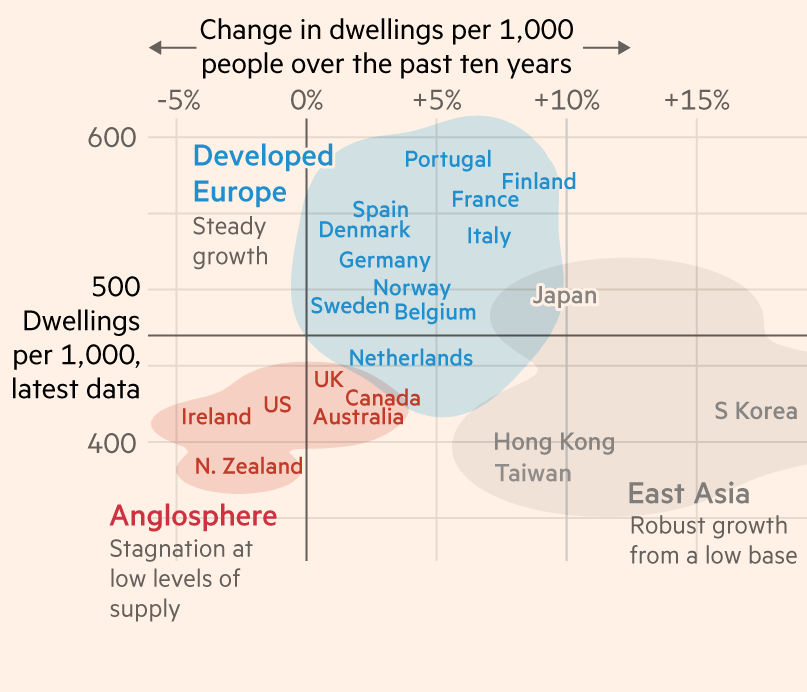 So you end up with a massive country that’s nearly empty, that needs to populate many regions, but all the immigrants cluster like sardines in a few cities, driving their prices up.