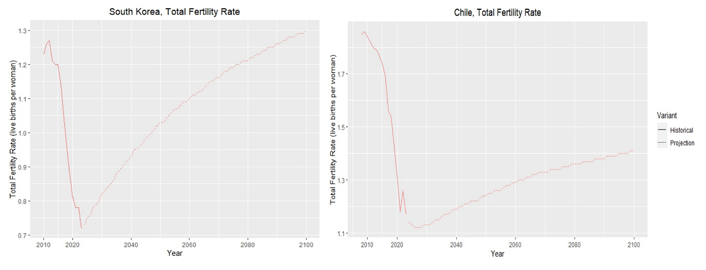 For example, Colombia’s fertility rate is 1.06, Iran’s is 1.44, and Turkey’s is 1.48, all of which are below the U.S.