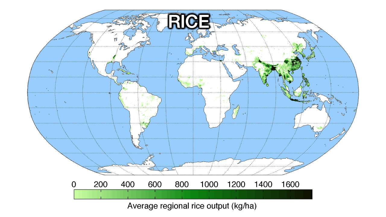 How? Well, bread comes from wheat, and rice from… rice. Here’s where they’re farmed: