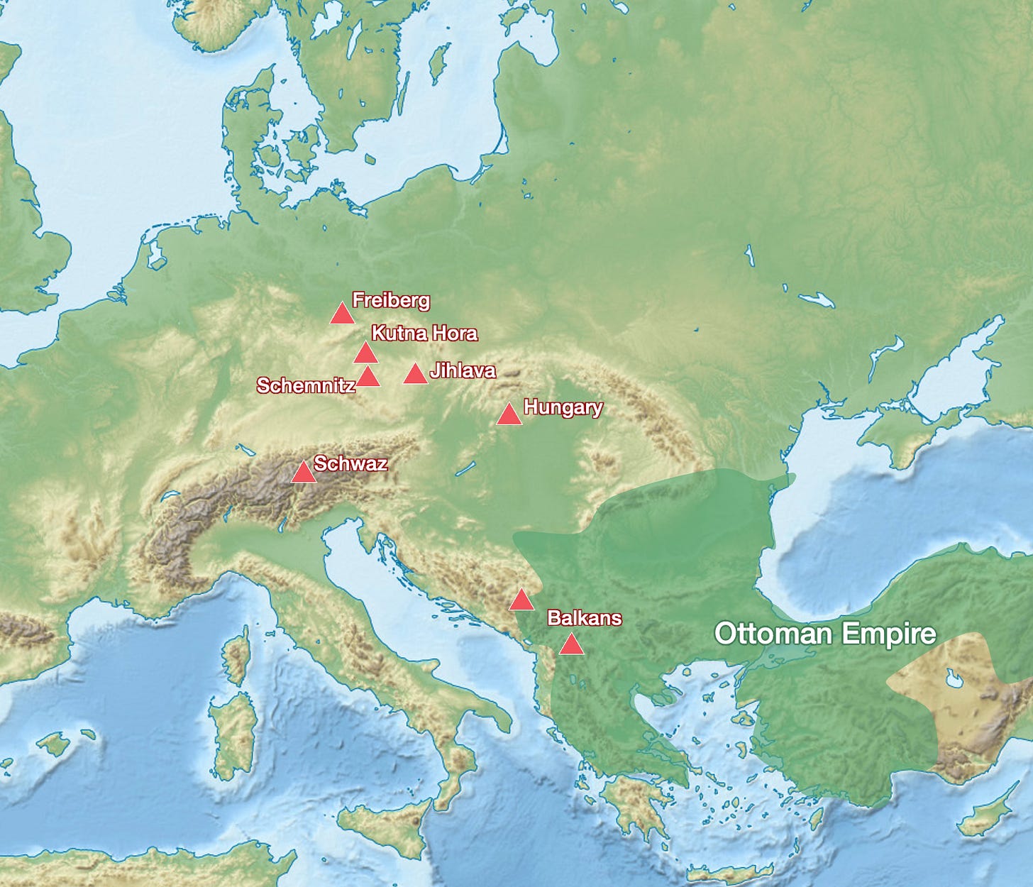 Fourth, mines in southeastern Europe, in Serbia and Bosnia, fell to the Ottoman Empire.