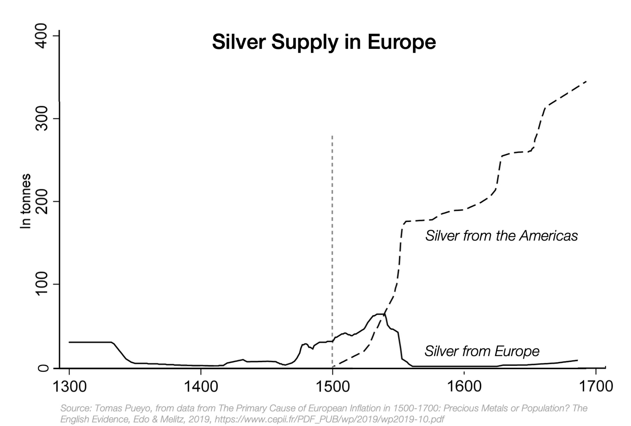 In Internet Will Kill the Nation-State, we explored how communication technologies destroyed the feudal system and the Church, and created the nation-state. In Pax Mercatus, we saw how agricultural and transportation technologies also contributed. Finance had a major effect as well: We saw in How Silver Made Chinese Empires the ways in which silver made and unmade Chinese empires. In Europe, silver also triggered the discovery of America, a technological explosion, and a runaway chain of events that replaced feudalism with capitalism and nation-states. If you understand this, you’ll be able to understand why nation-states are threatened by cryptocurrencies today, and how their inevitable success will weaken nation-states. In this premium article, we’re going to explore how Europe starved for silver, and how the reaction to this flooded the world with silver. In the next article, we’re going to look at the consequences in the modern era, and the takeaways for today.