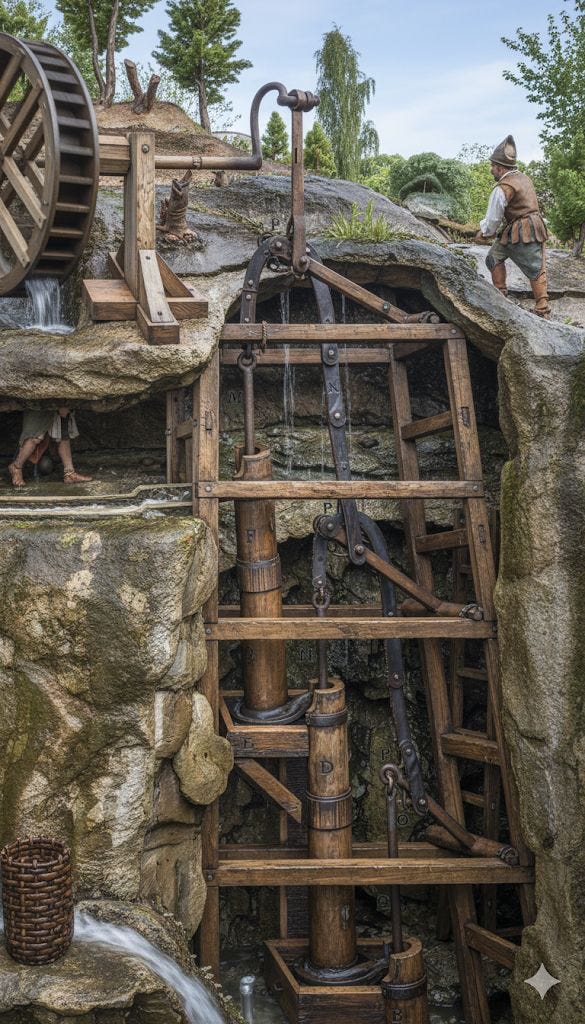 As silver became more and more valuable, flooded mines suddenly became attractive. How could we get this water out so we can keep mining?