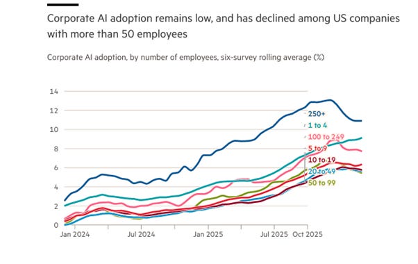 That’s why it’s a worrying sign that corporate AI adoption remains low and is shrinking!