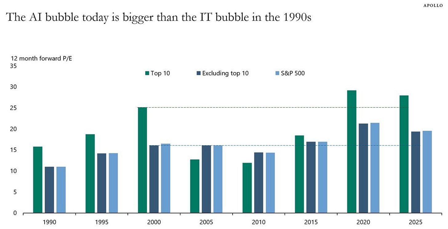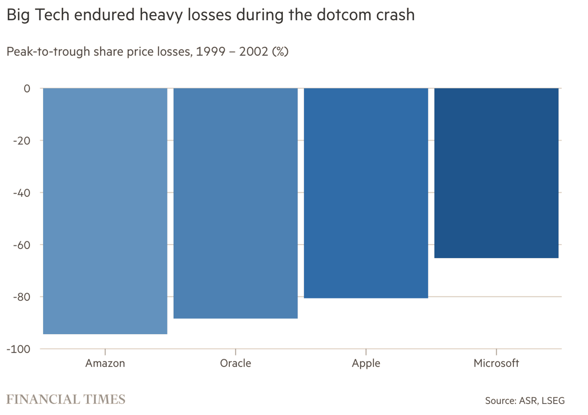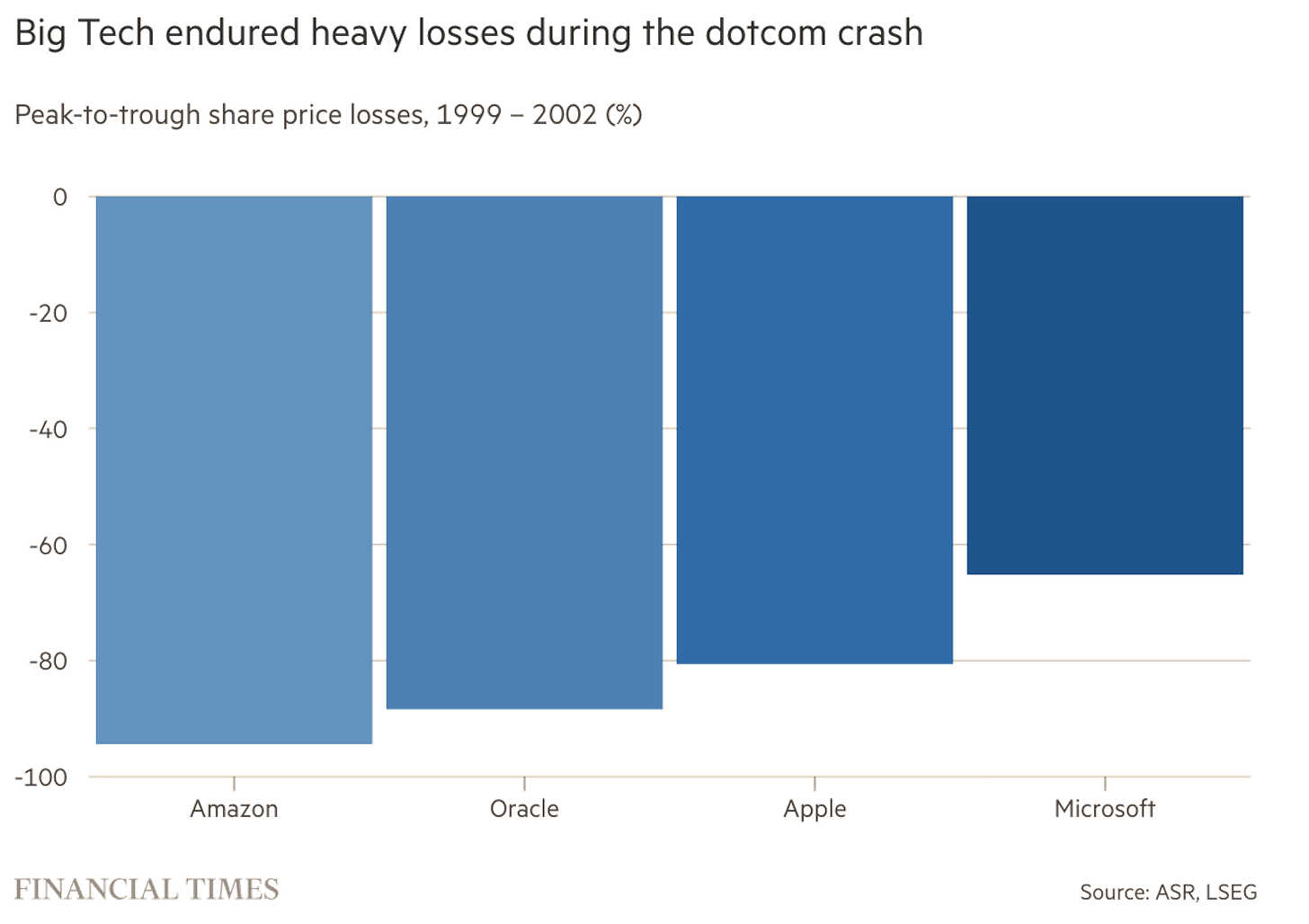 A market correction of the same magnitude as the dotcom crash could wipe out over $20trn in wealth for American households, equivalent to roughly 70% of American GDP in 2024. Foreign investors could face wealth losses exceeding $15trn, or about 20% of the rest of the world’s GDP. For comparison, the dotcom crash resulted in foreign losses of around $2trn, roughly $4trn in today’s money and less than 10% of the rest of the world’s GDP at the time.—Gita Gopinath on the crash that could torch $35trn of wealth