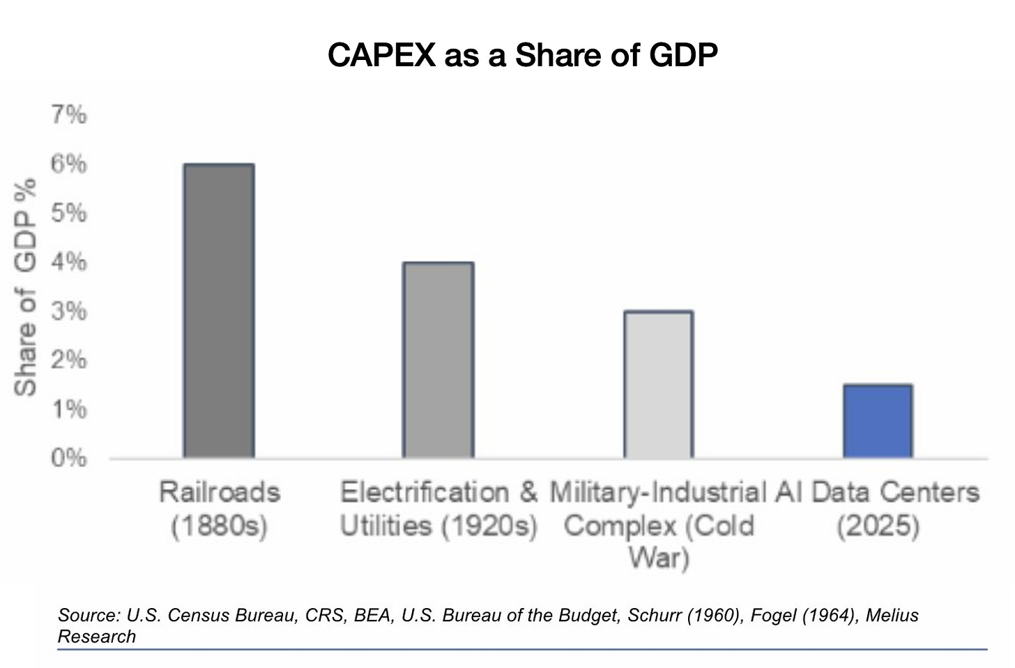 It’s not yet at the level of railroads or electricity, but if it keeps growing as planned, it might reach ~4% of GDP, competing with the electrification craze.