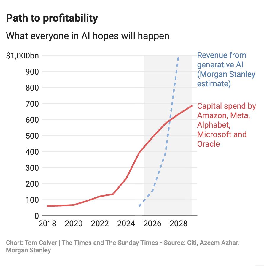 Remember that the big four tech companies are investing hundreds of billions per year in their AI build-up. They would need trillions in revenue to make this back!