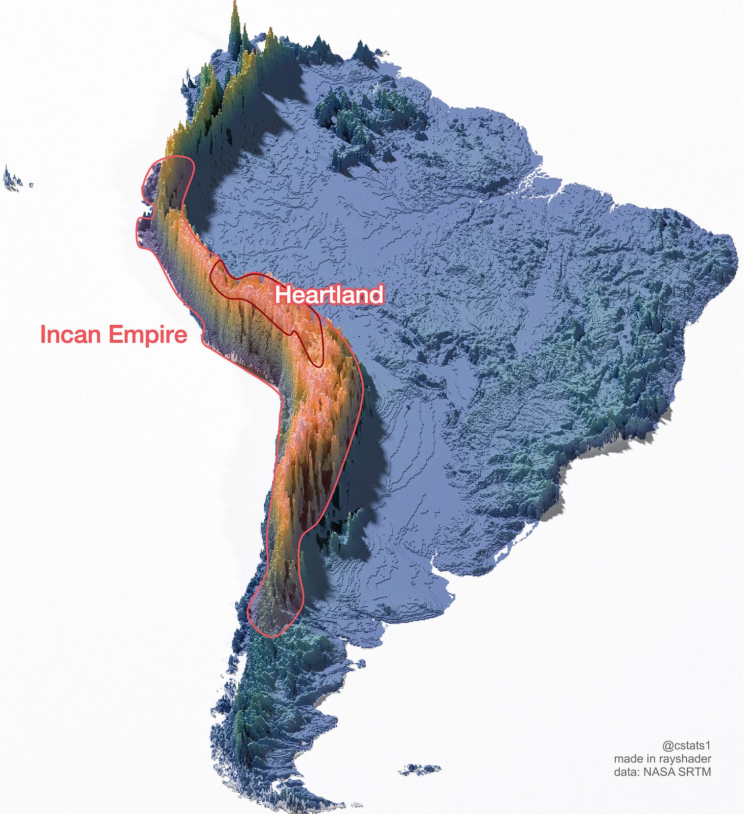 Arguably, civilization would have had a much harder time developing in the Americas if the land had been much flatter and low-lying. It’s not a coincidence that the Incan Empire was a mountain empire and was the only independent one in the world to form on the equator!