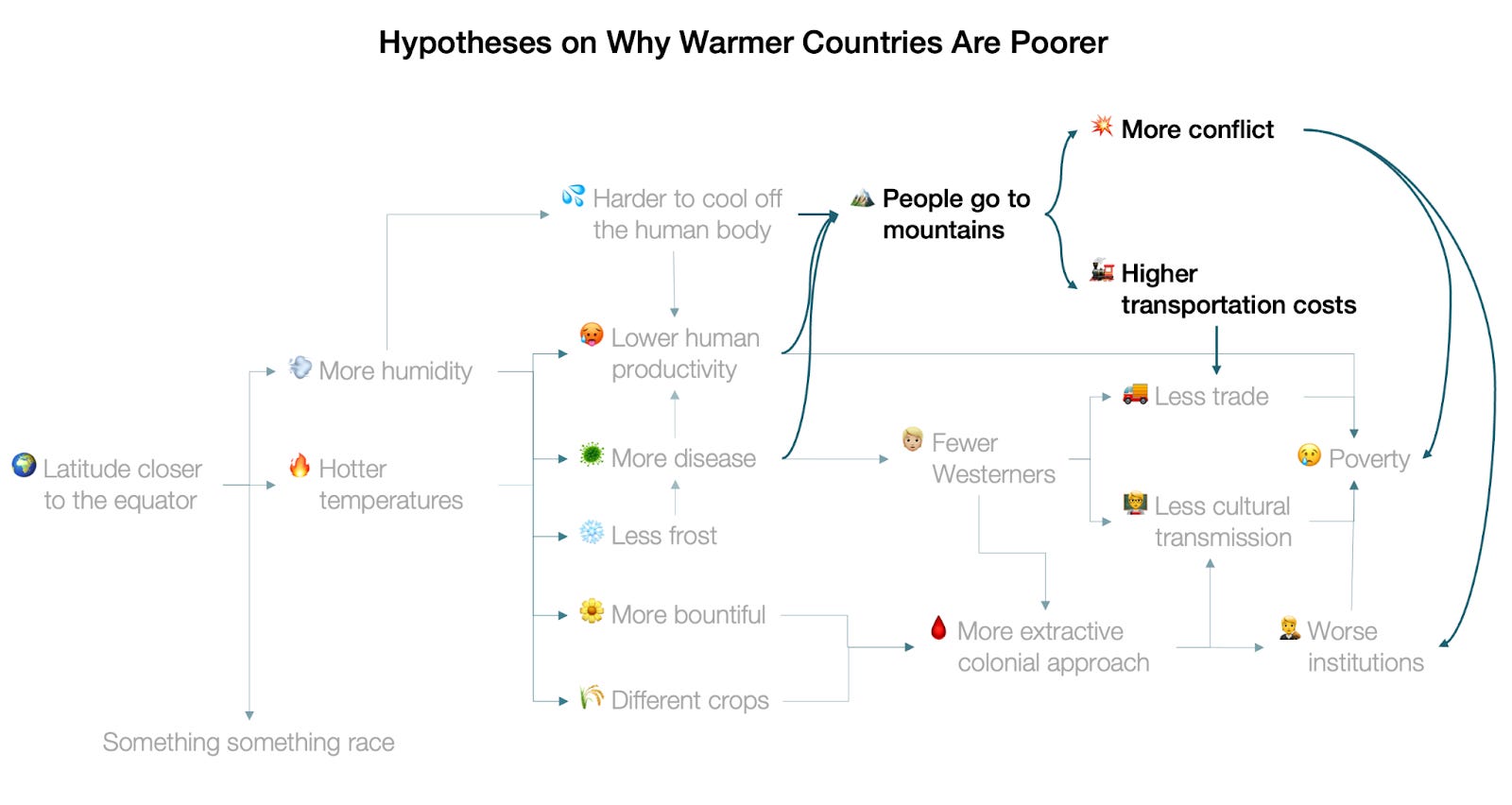 This is how mountains are the most significant underdiscussed topic in economic development, and how they must be considered to better explain why warmer countries are poorer.