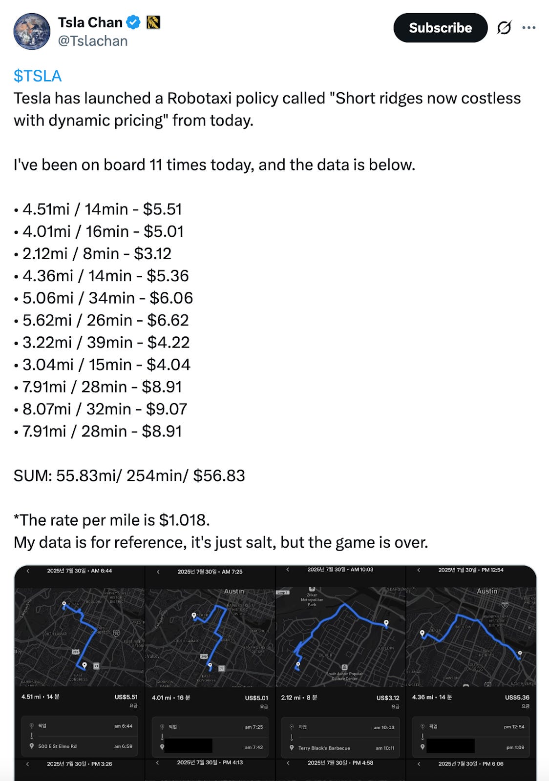 If Tesla maintains this type of pricing, it won’t make sense for drivers to continue their job, and Uber and Lyft will crash.
