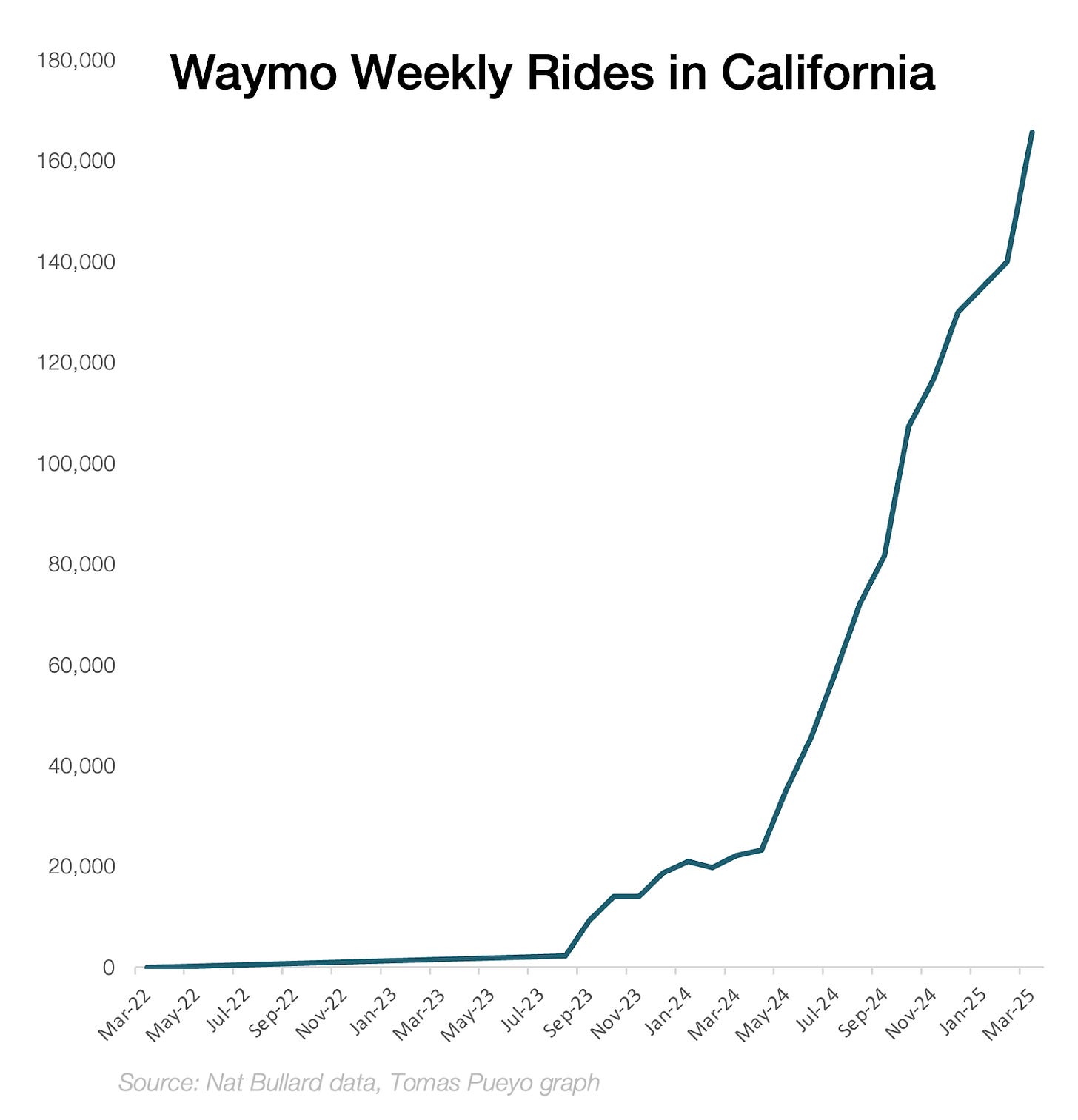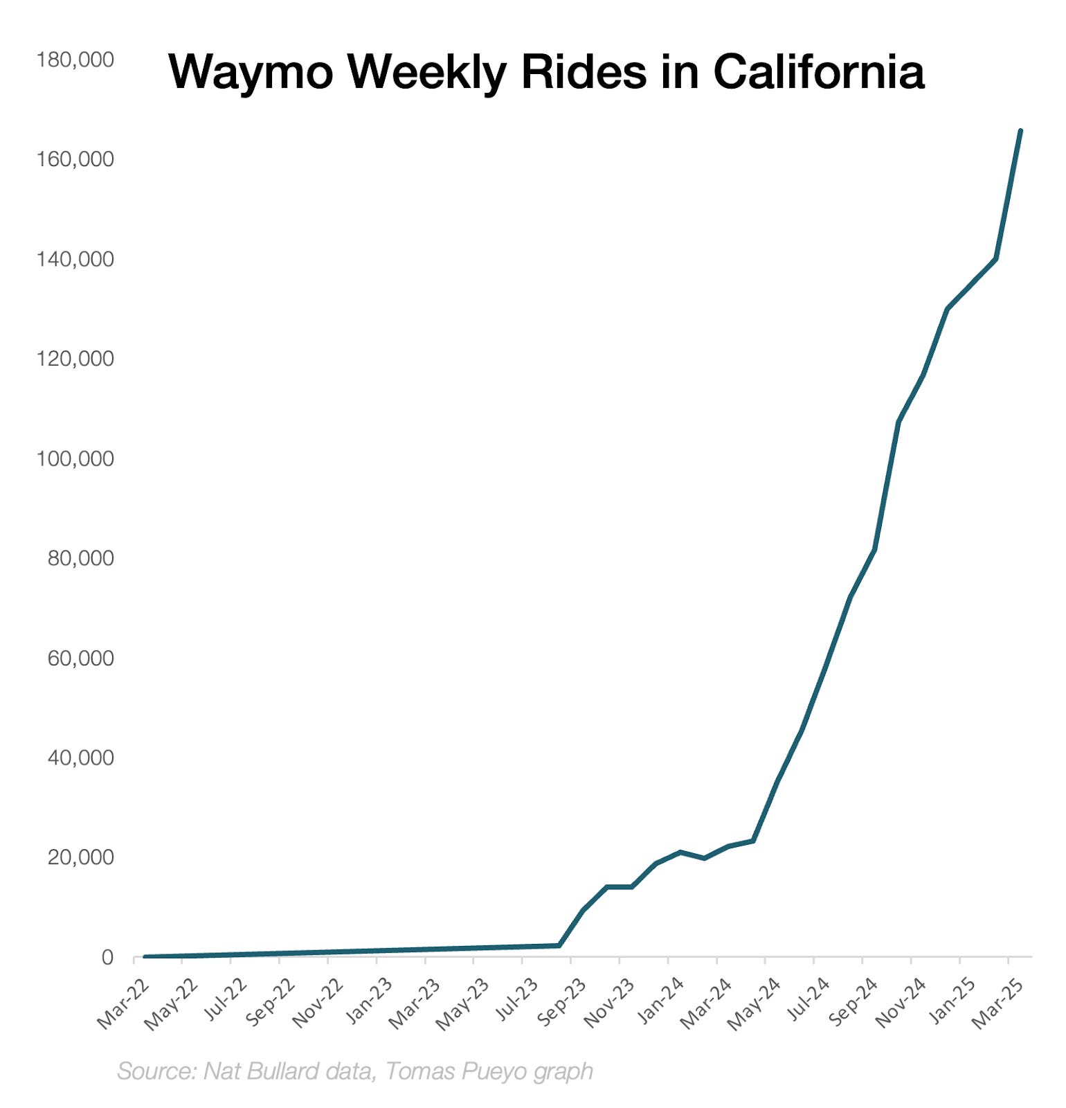 Here are Waymo’s weekly rides, just in California: