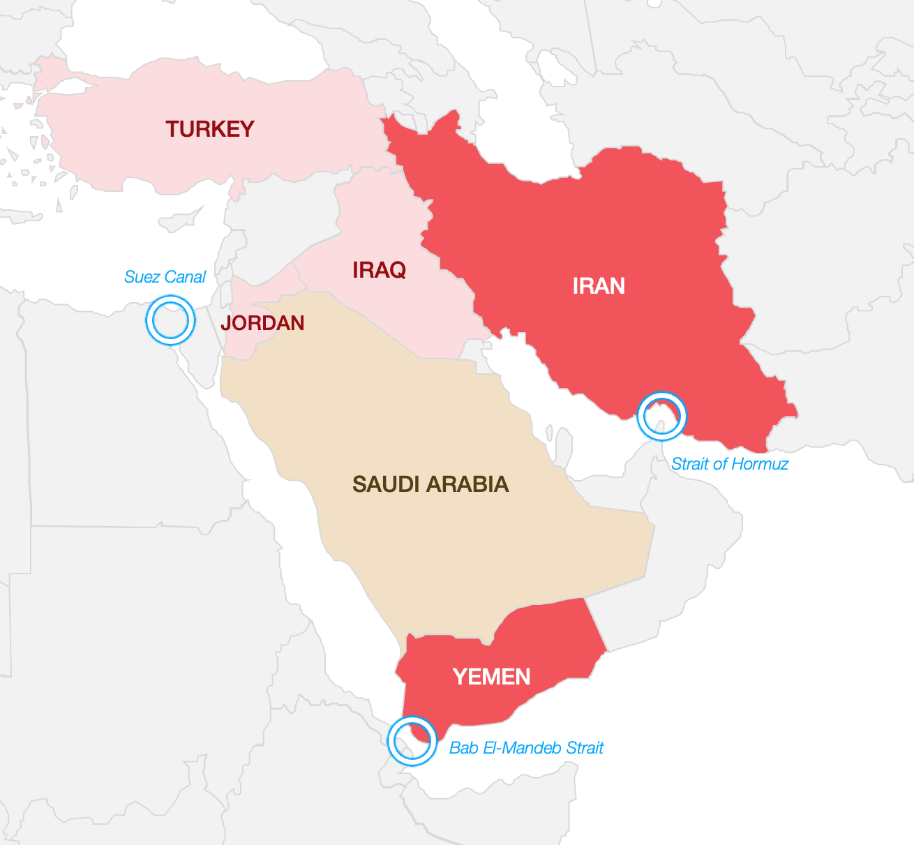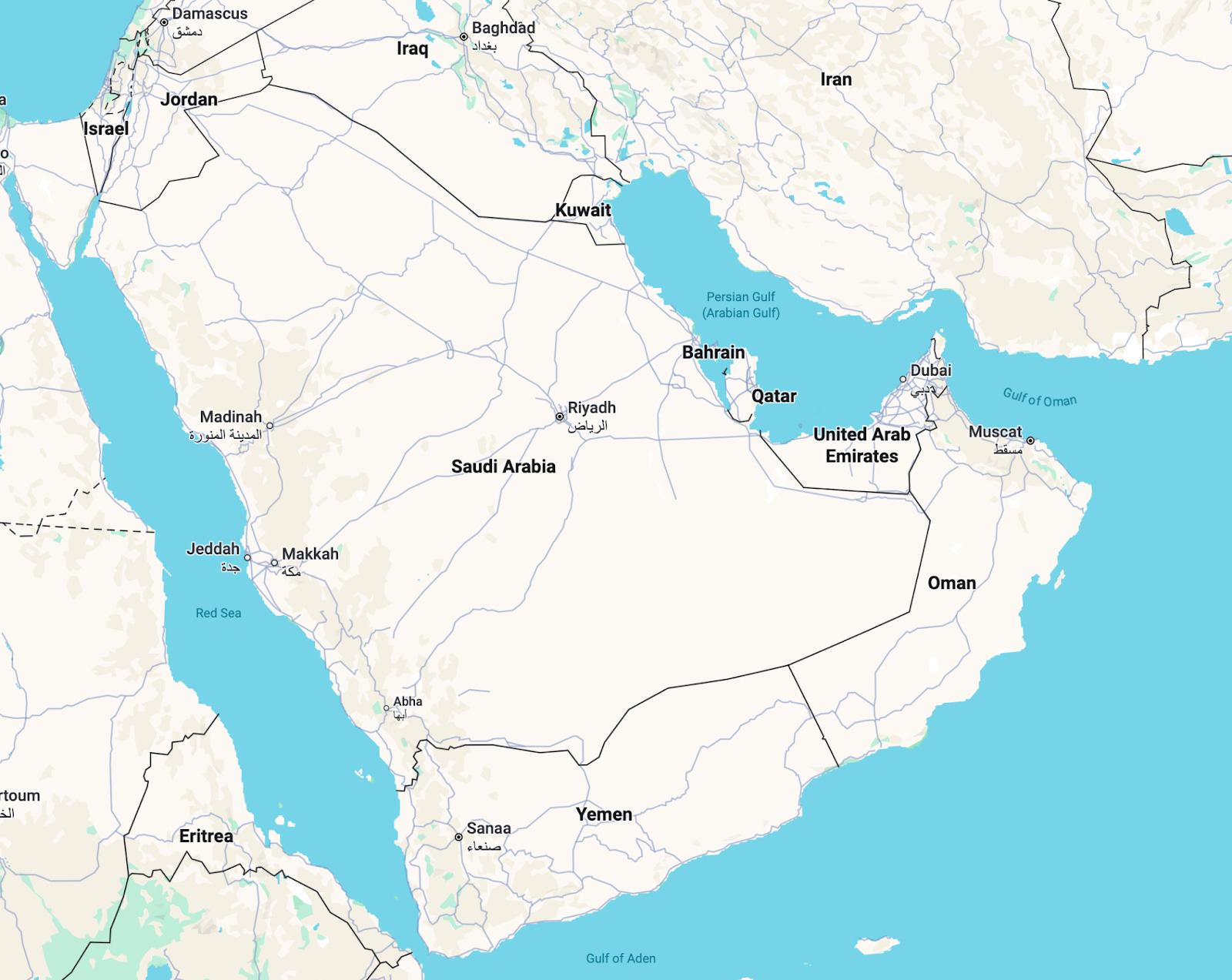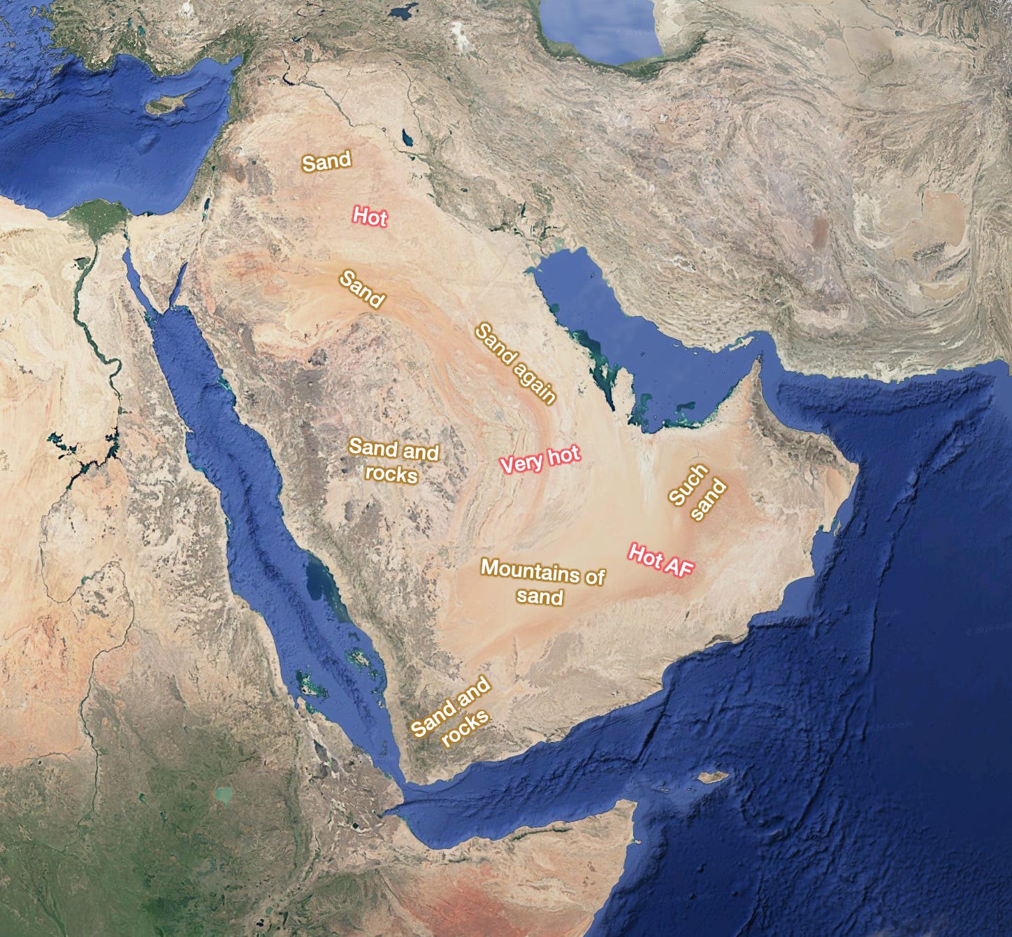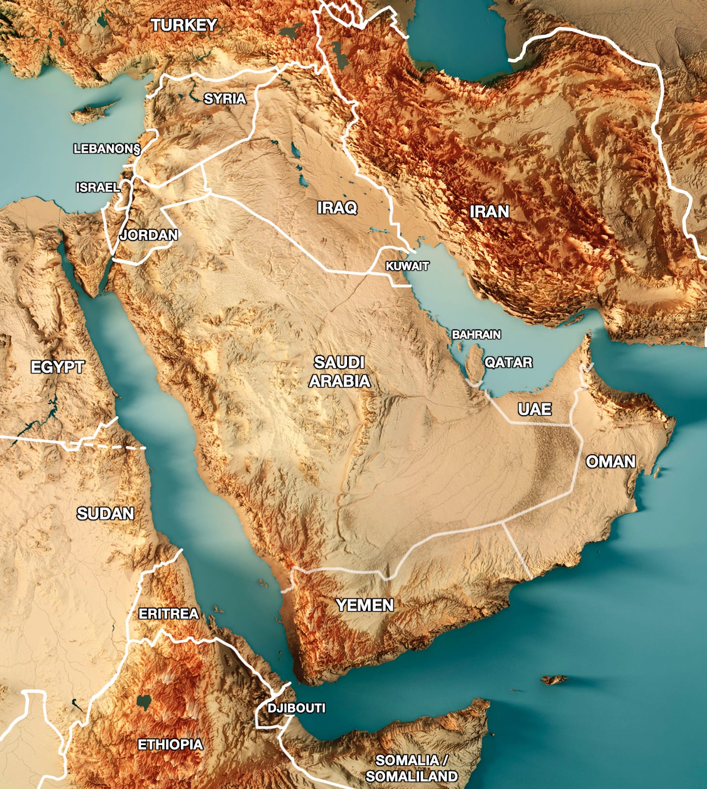That’s one of the main reasons Saudi Arabia is surrounded by so many smaller countries along the coasts, including Jordan, Yemen, Oman, the UAE, Qatar, Bahrein, and Kuwait.