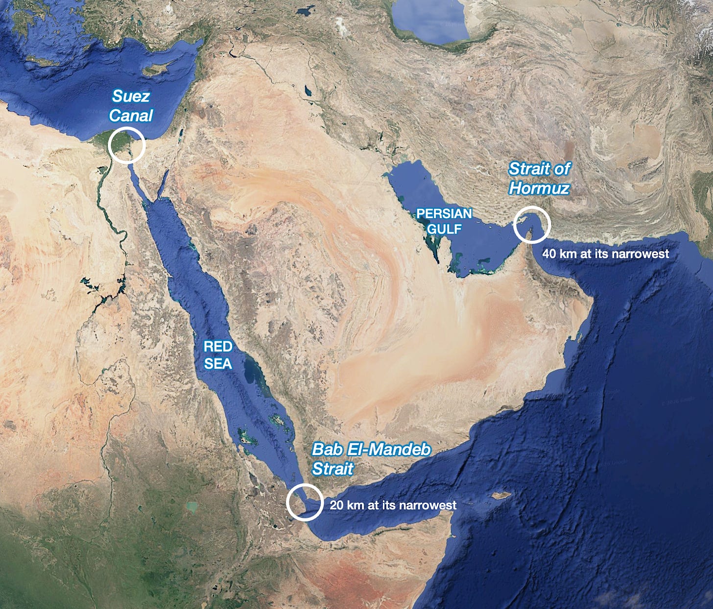 These coastal regions are also the most exposed to foreign powers: Trade moves in very narrow corridors, the Red Sea and the Persian Gulf, which can be easily controlled through three choke points.