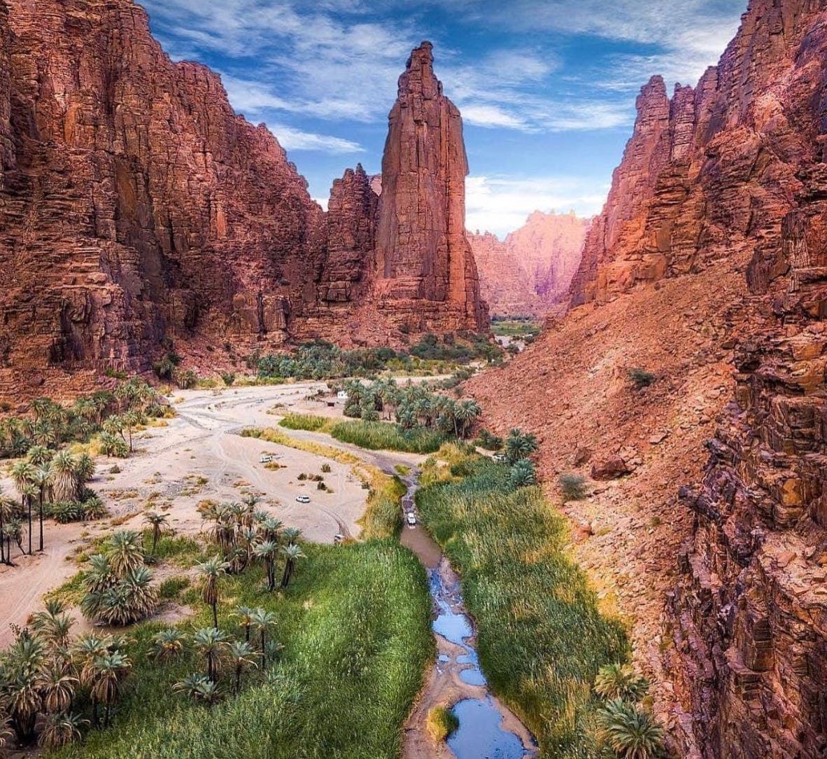 The Arabian-Nubian Shield was a big rocky mountain formation that was then split by the Red Sea. Now the mountains remain on both sides of the sea, and the east part (the Arabian Shield) has some pretty tall mountains!