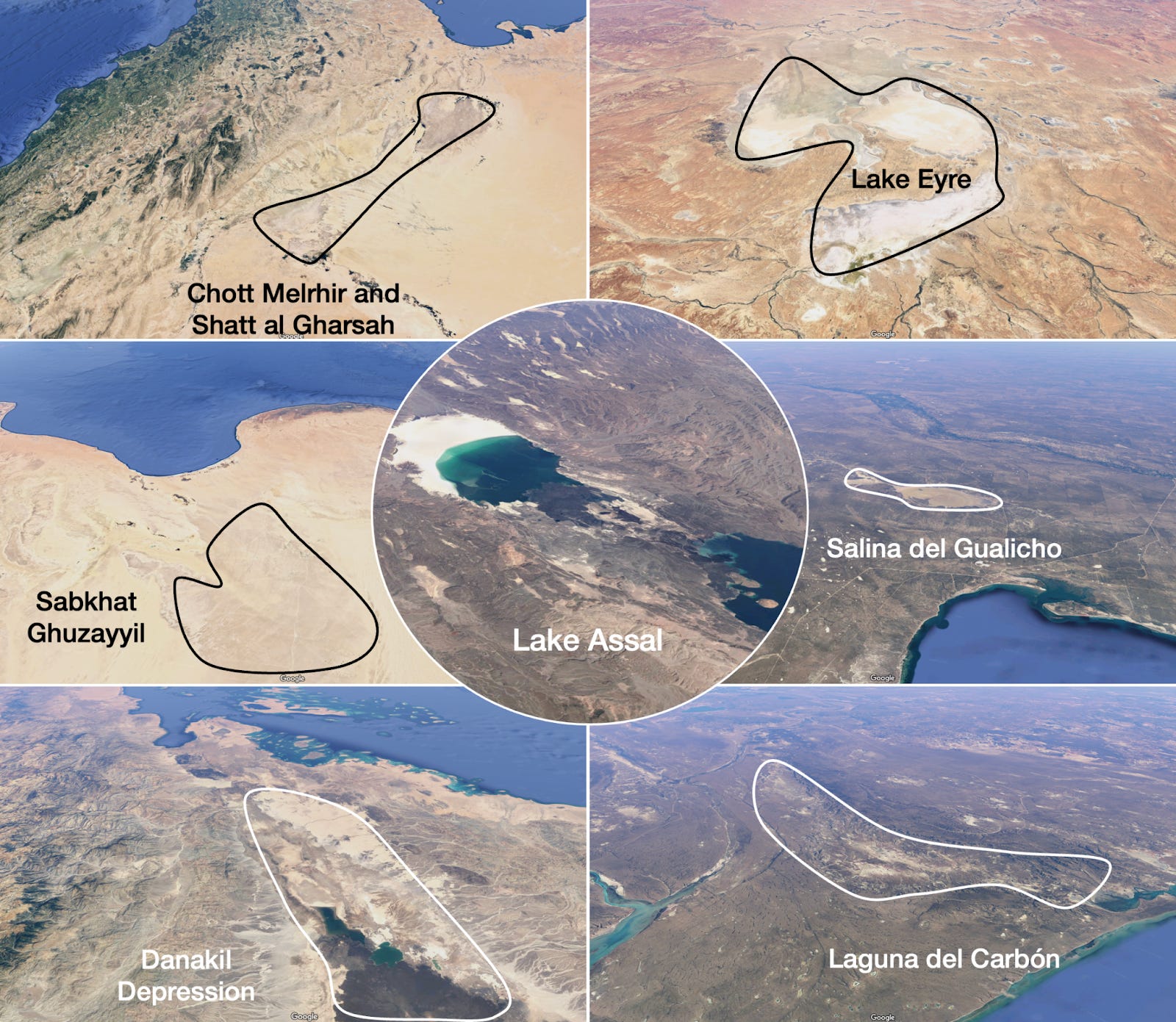 Most of them are actually in the Sahara, which sorely needs water. But there are others in Ethiopia, Australia, Argentina, and the US. And then there’s the Caspian Sea south of Russia, which is huge, shrinking, and also below sea level.
