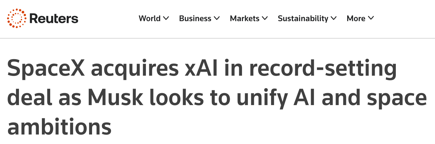 Musk needed a way to bankroll the build-up of datacenters, which according to him need to be in space, so he decided to merge SpaceX with xAI. That way, the SpaceX cash can fund xAI’s AGI run.