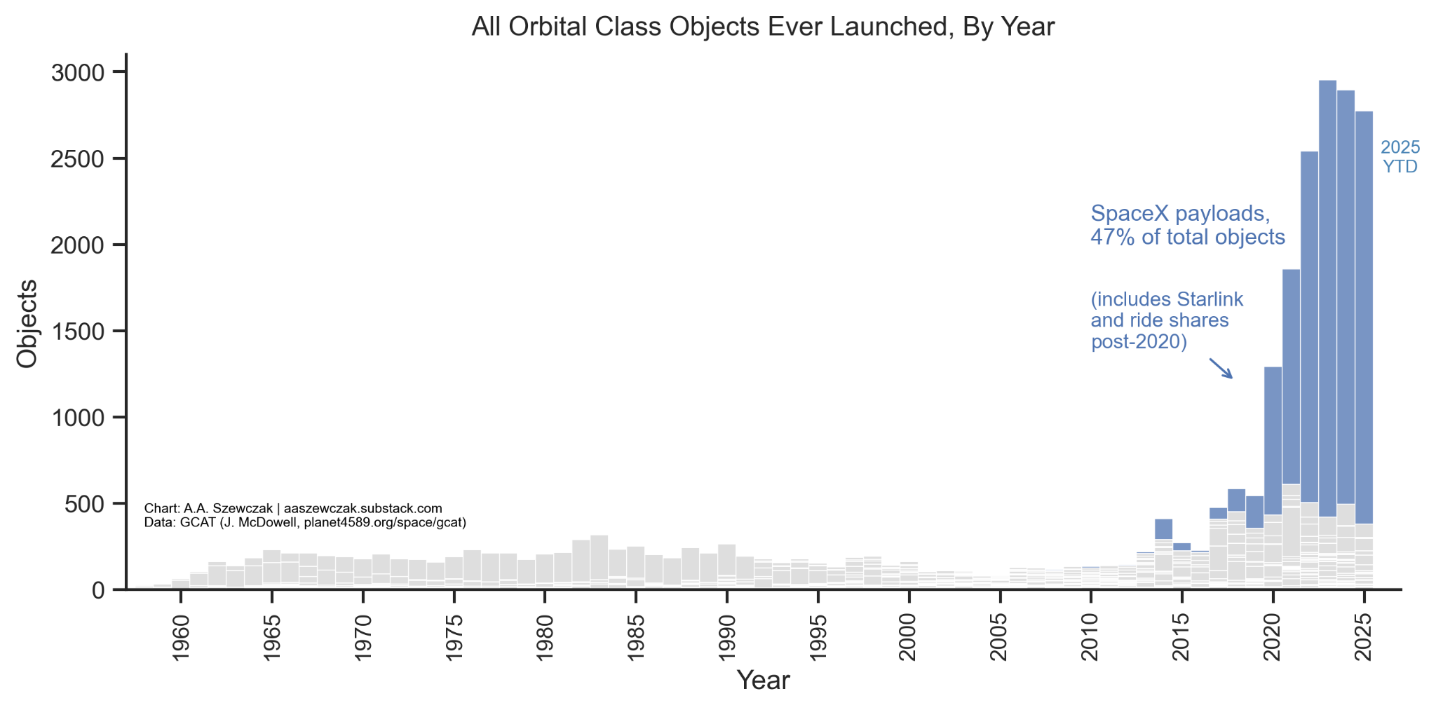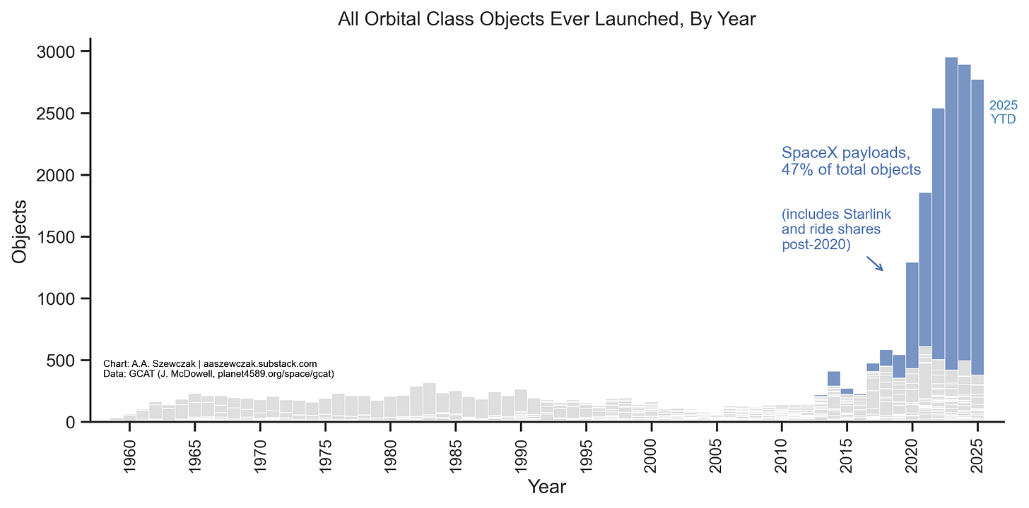 There’s been an explosion in stuff being sent to space, and of course the vast majority is from SpaceX:
