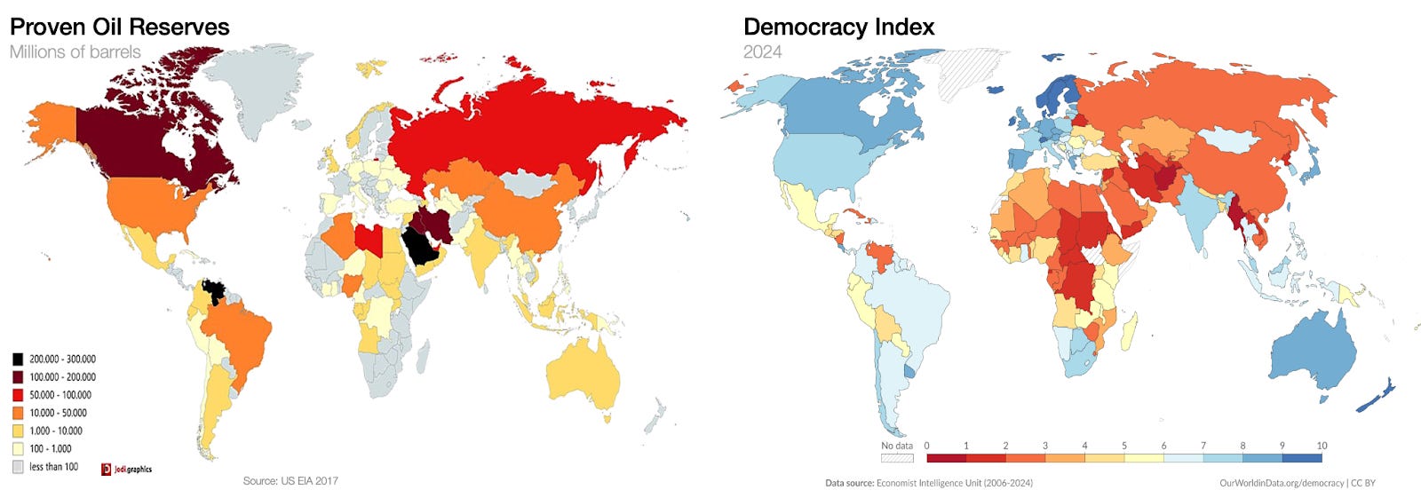 We showed how bad oil has been for democracy in Venezuela, but this is true across the world.