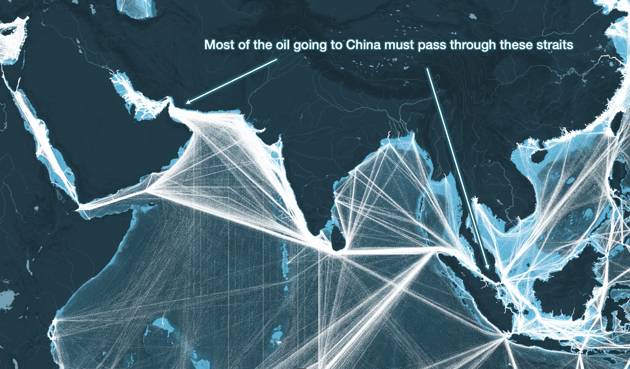 But if oil doesn’t flow through these straits anymore, the US can’t threaten China with energy famine anymore.