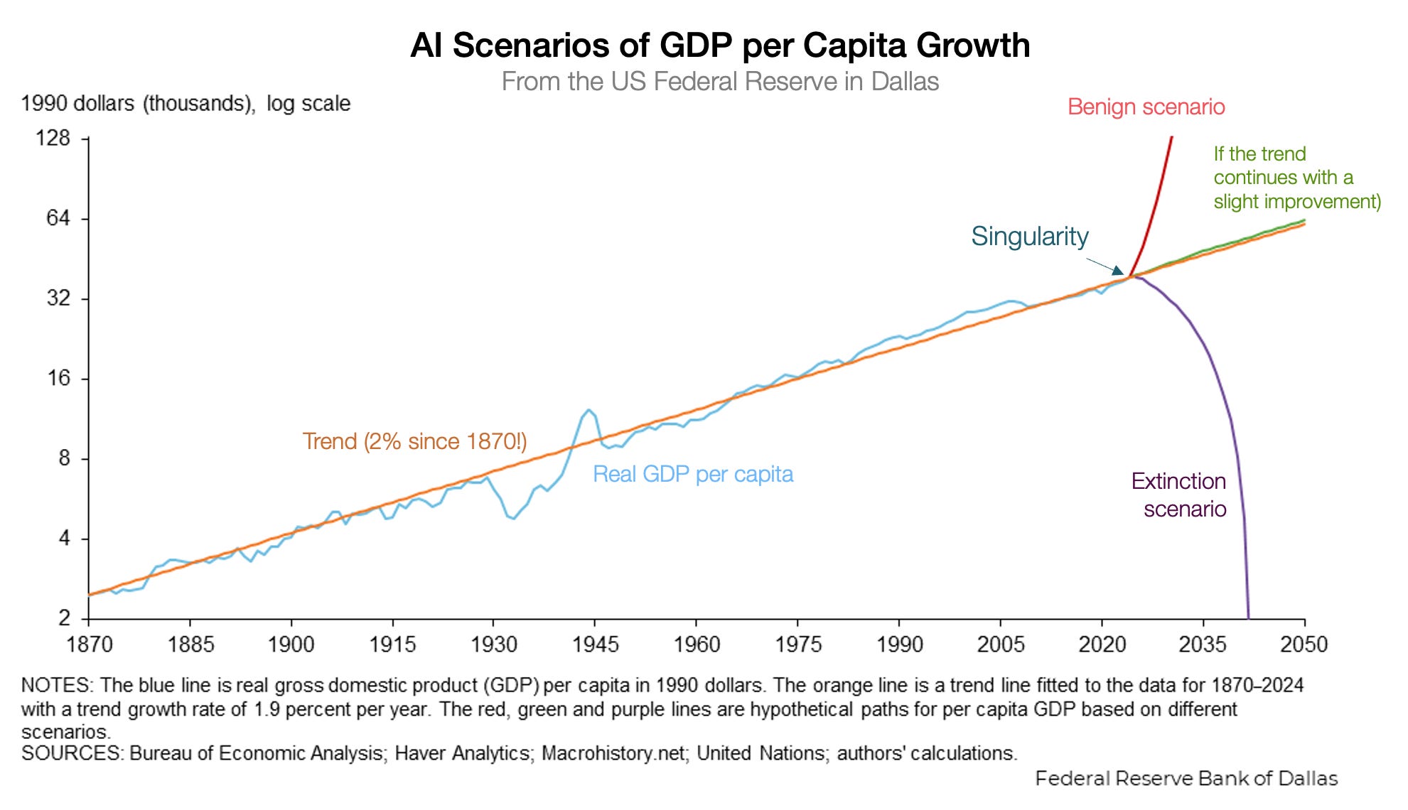 Another argument against this is: “If AGI really happens as you say, we would see GDP per capita grow 5%, 10%, maybe 20% per year, and that’s impossible, it has never happened.”