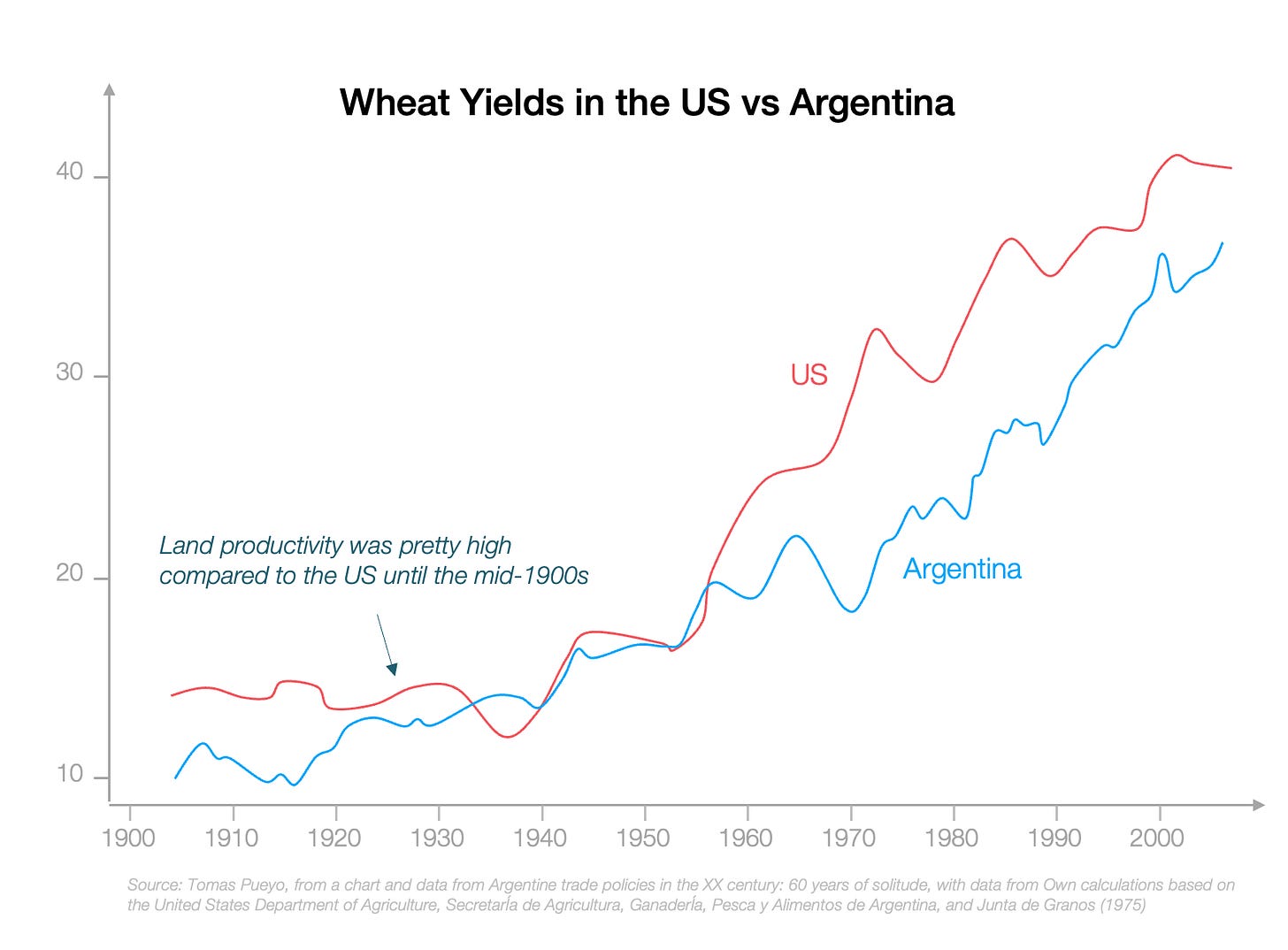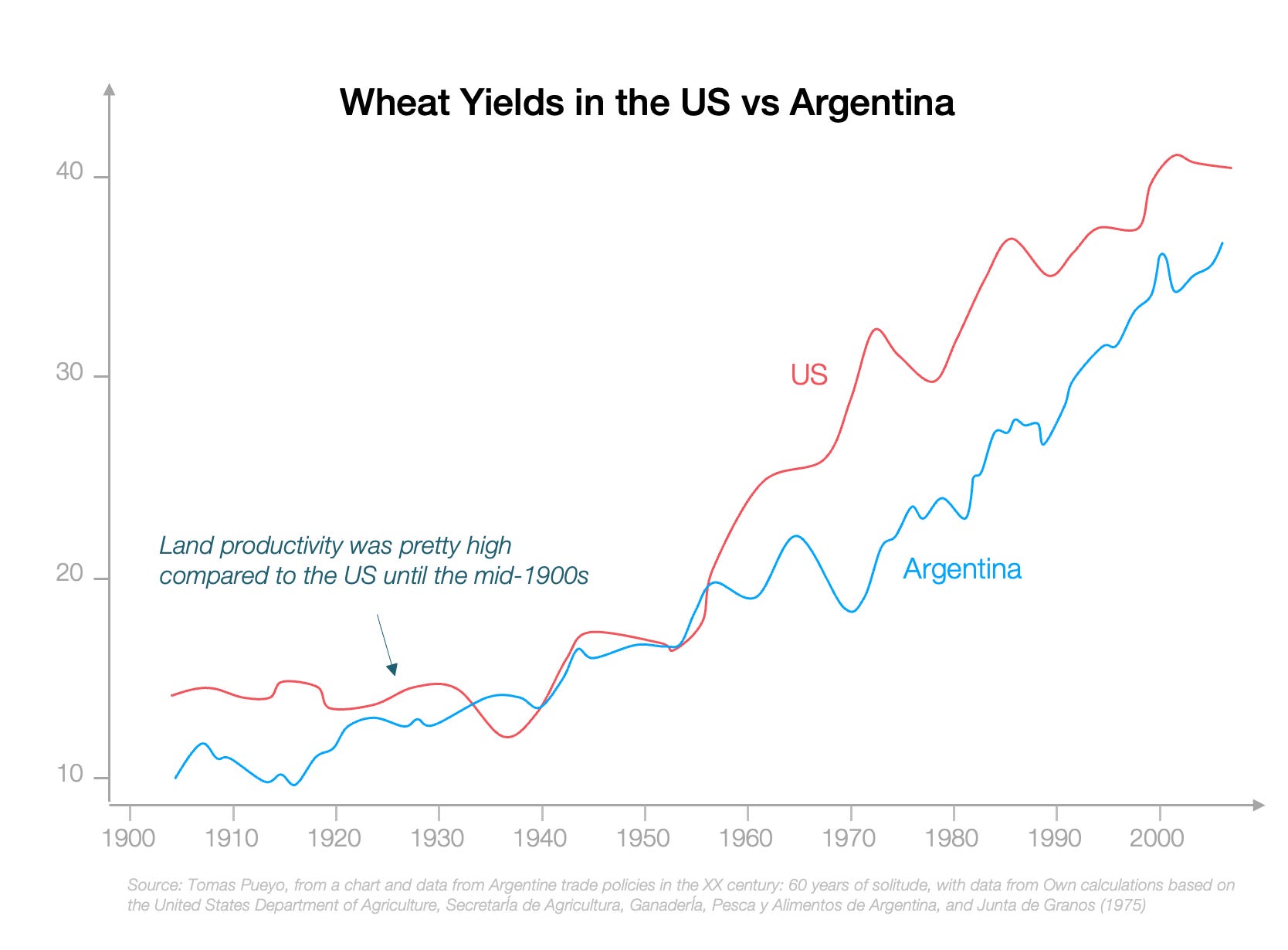 Around 1900, Argentina was 2x richer than Japan, and over 4x richer than Taiwan, South Korea, and China. But all these countries are now richer than Argentina. Why?