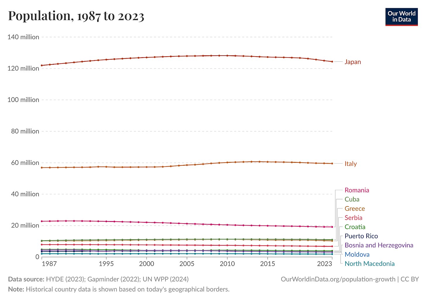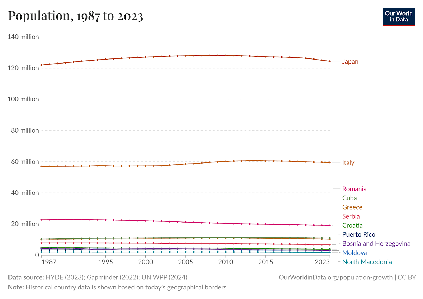 Because of this, the population of some places is already shrinking, such as Eastern Europe, Italy, and Japan.2