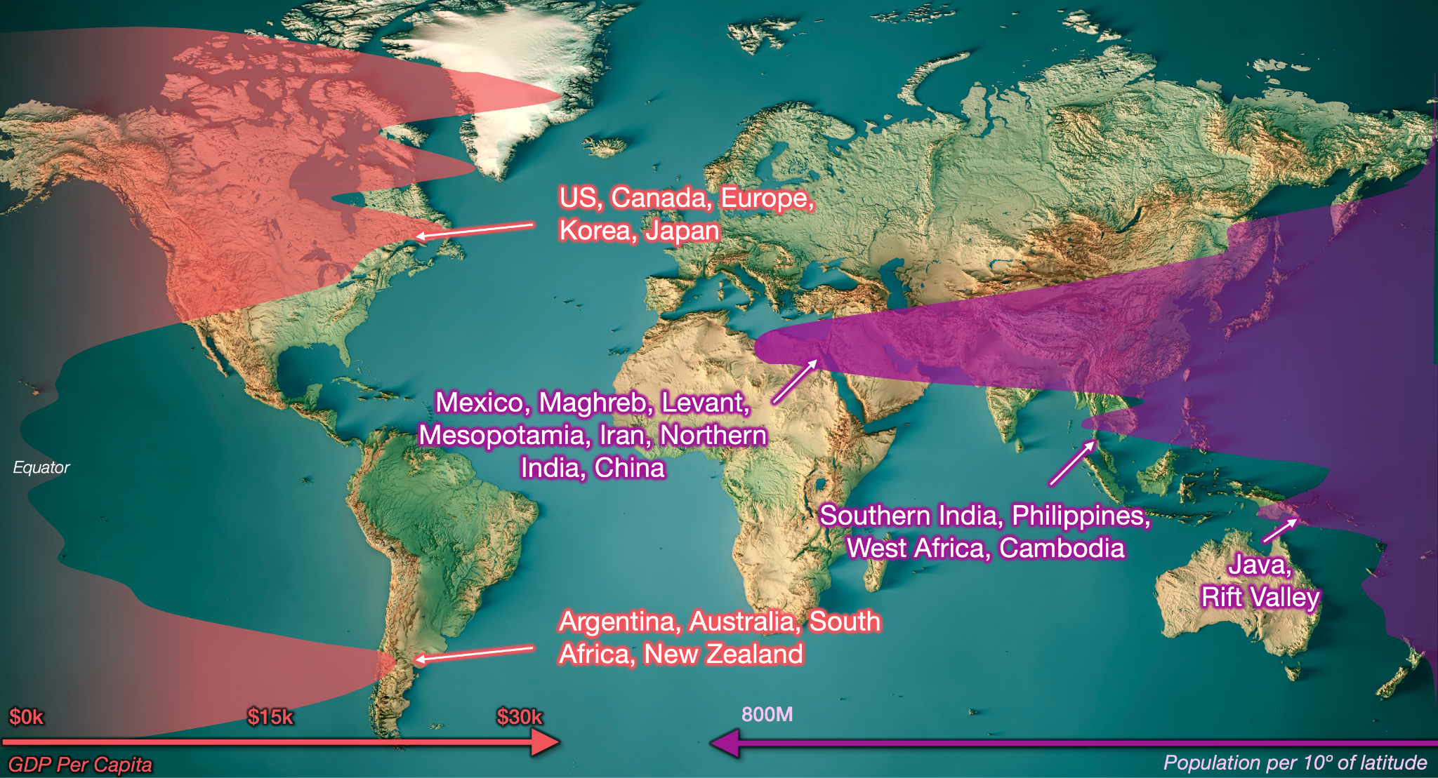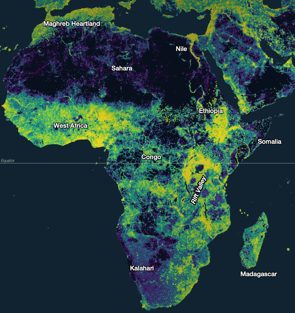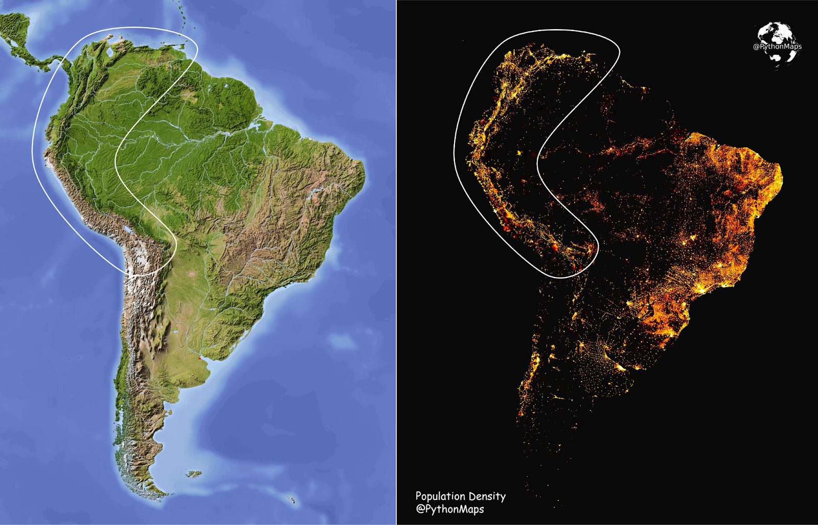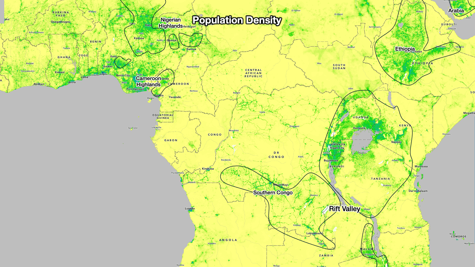Human habitation does seem to follow the patterns you describe to a remarkable extent. But there are some quite significant counterexamples hiding below the forest canopy.